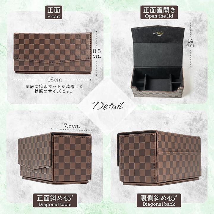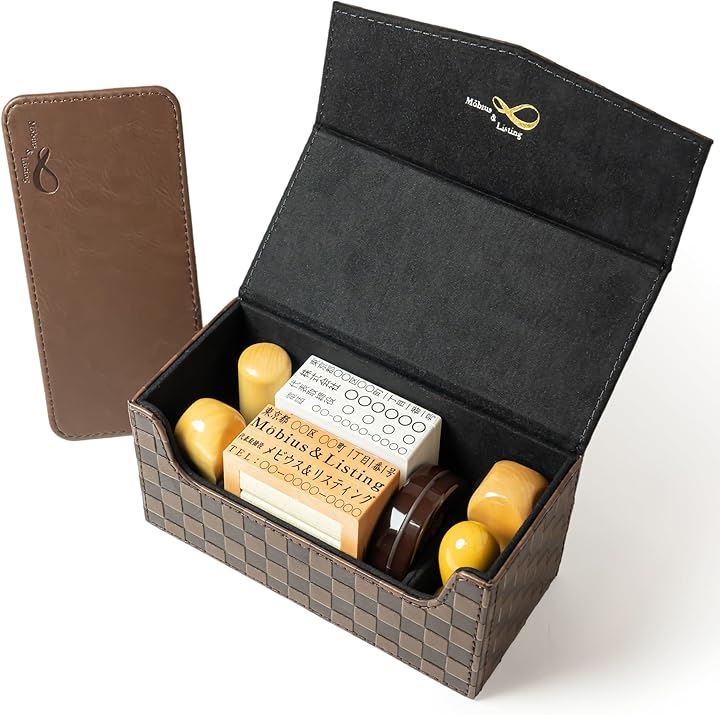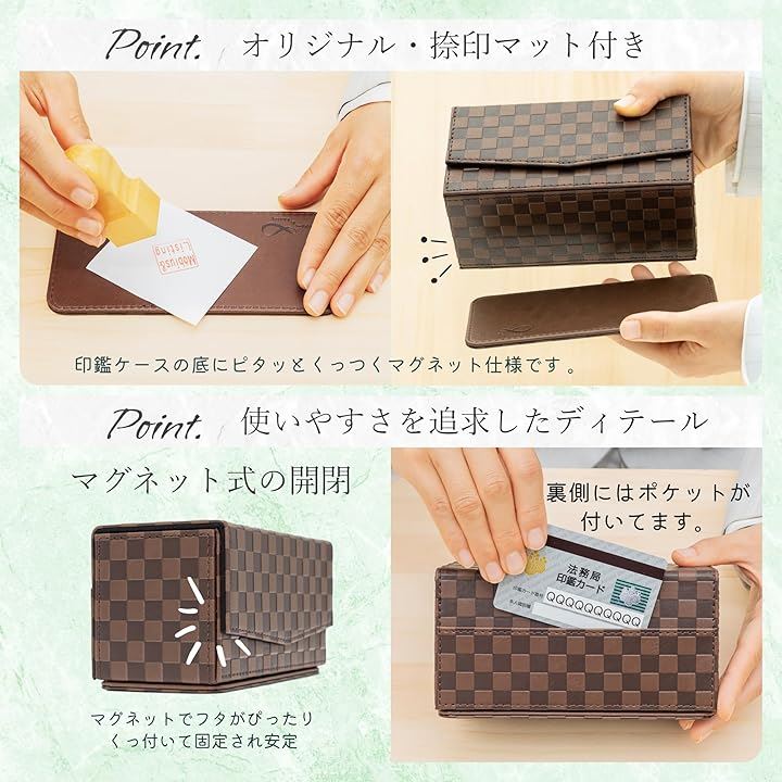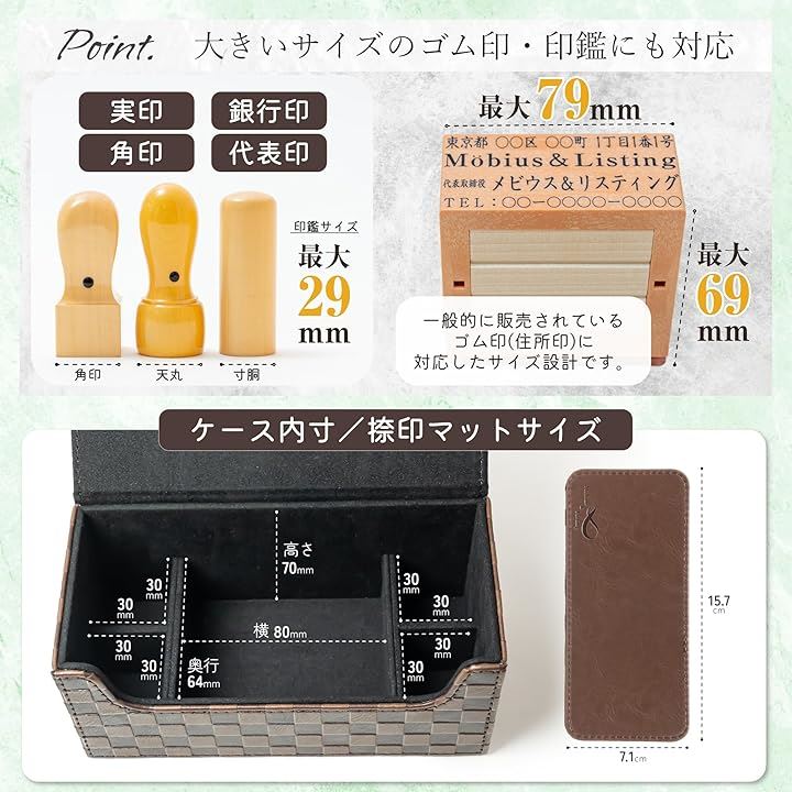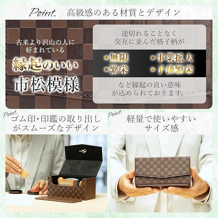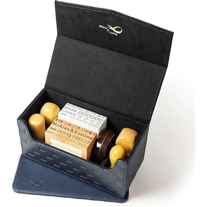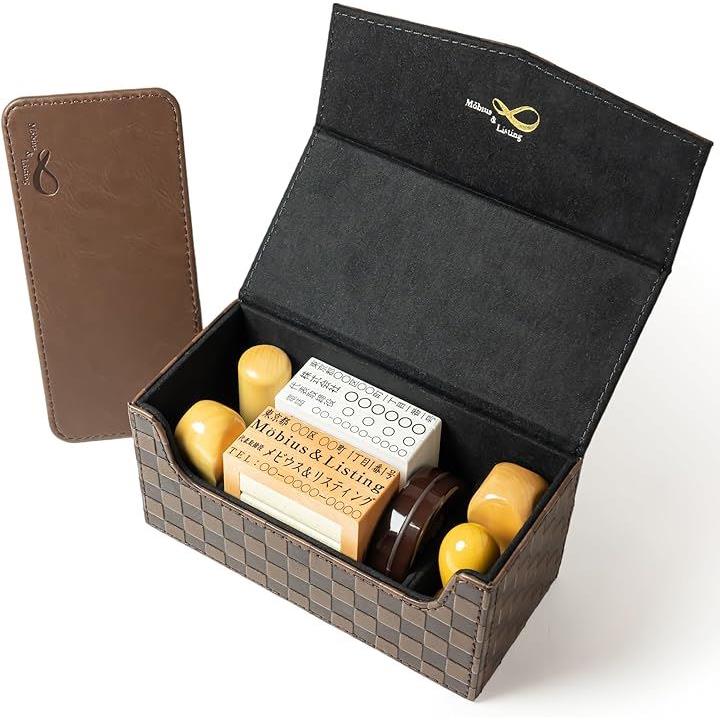Möbius 市松模様で縁起のいい・法人 印鑑ケース シリーズ・小中型サイズ ハンコケース ゴム印ケース 印箱 判子ケース 法人用 会社 実印 銀行印 角印 認印 住所印 など 4本 朱肉 スタンプ台 捺印マット付き No.11