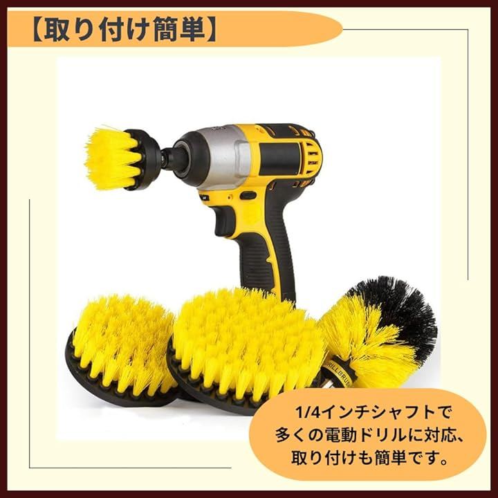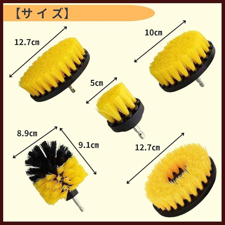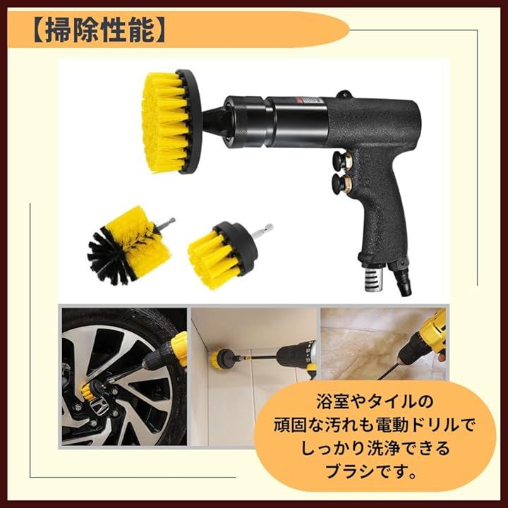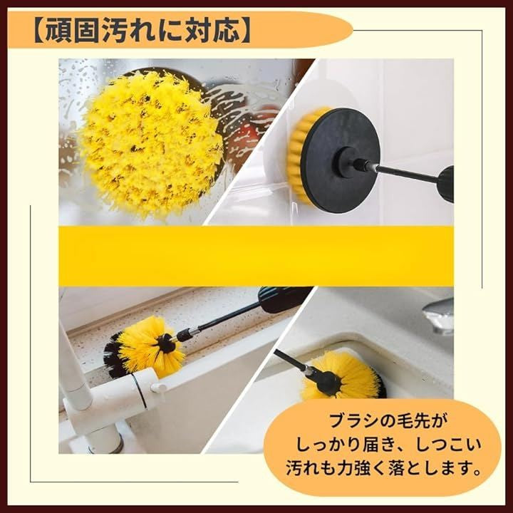ドリルブラシ 回転ブラシ 浴槽 電動掃除ブラシ 洗車 タイル 電動ドリル ポリッシャー イエロー