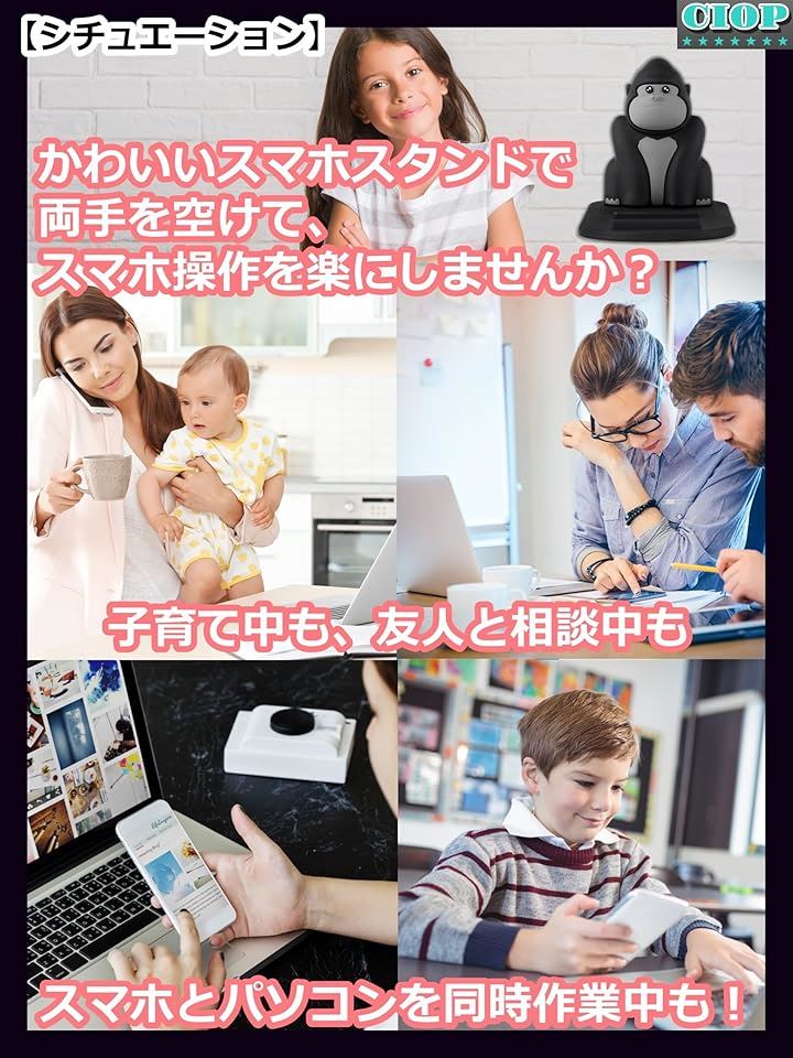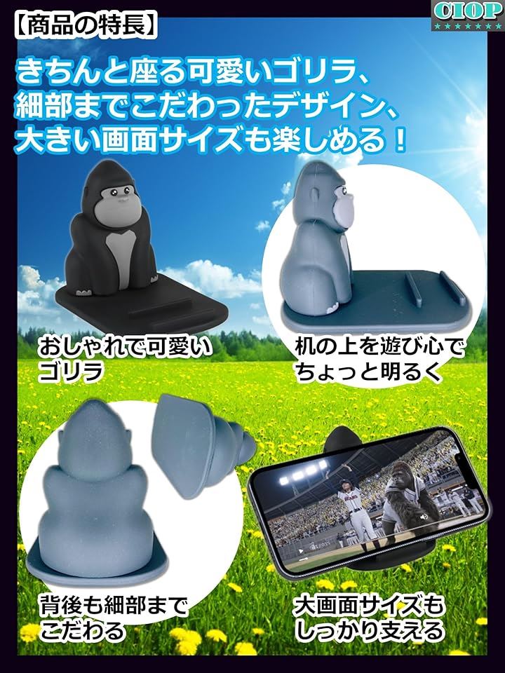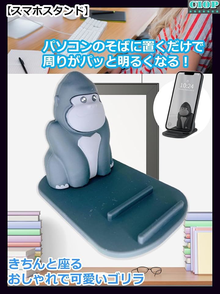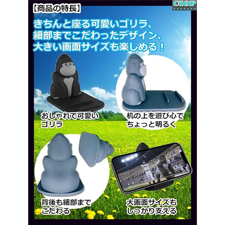 「ユニークなデザイン」:優しくコミカルで かわいい きちんと座る ゴリラ があなたのスマホをやさしく支え見守ってくれます。