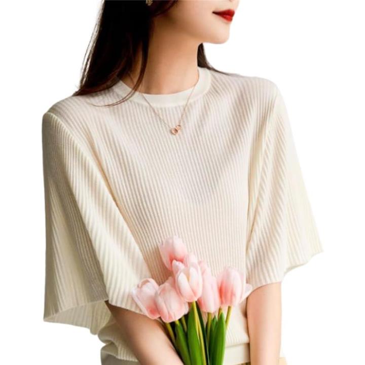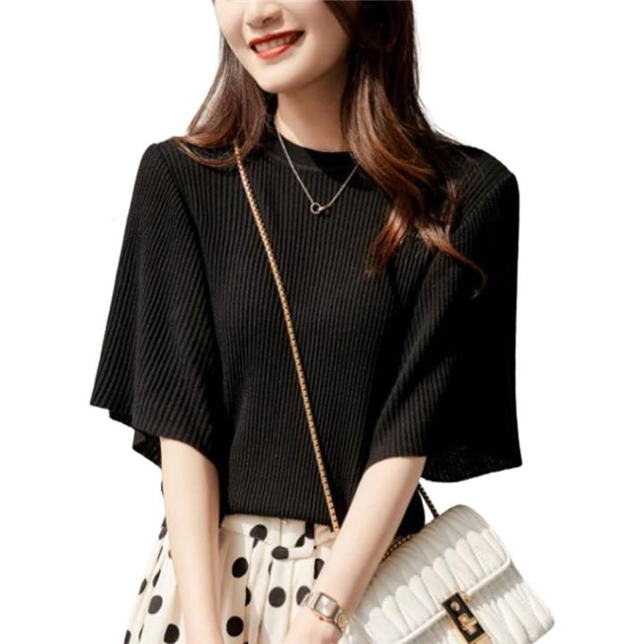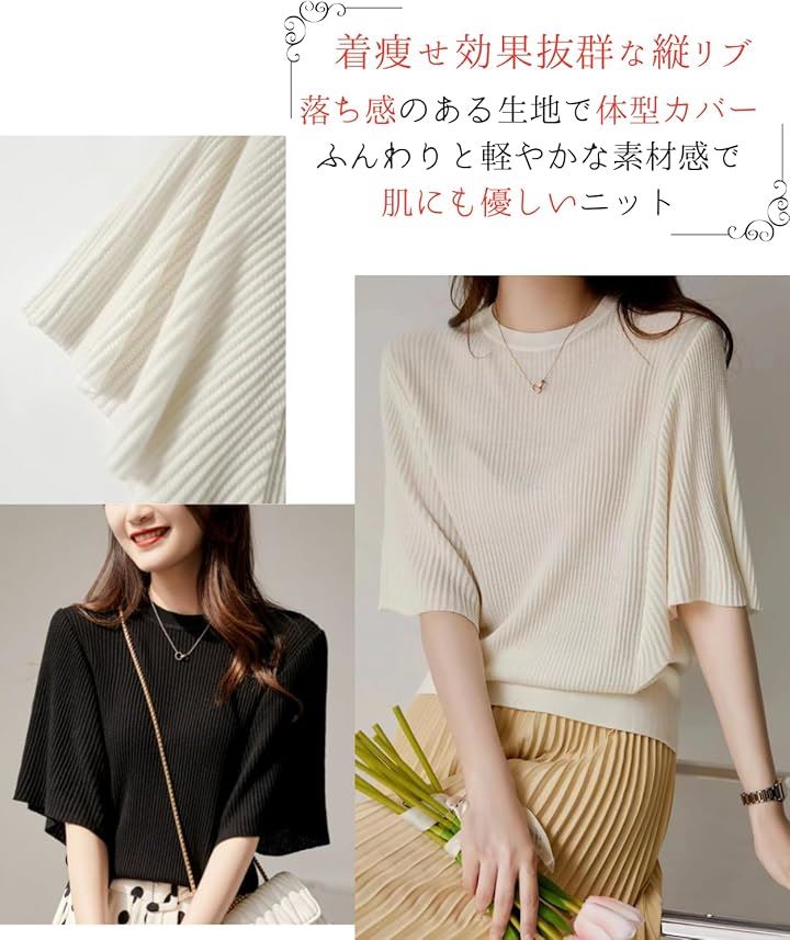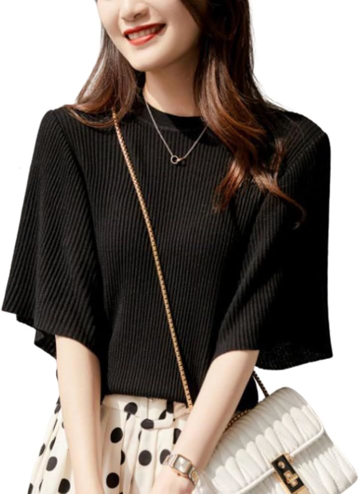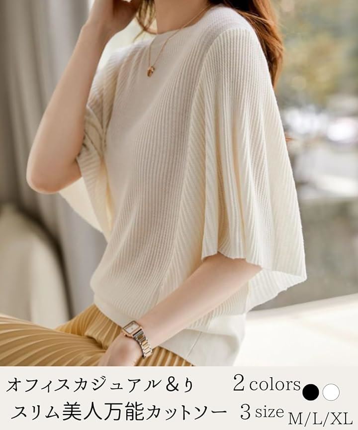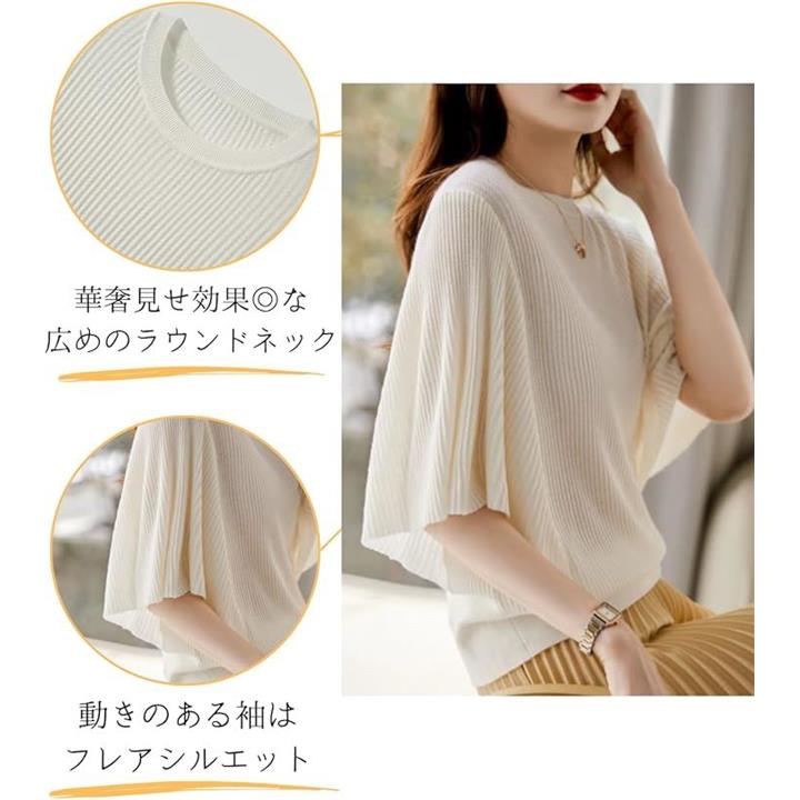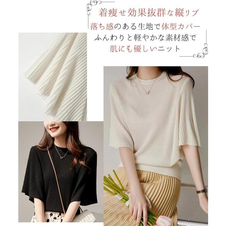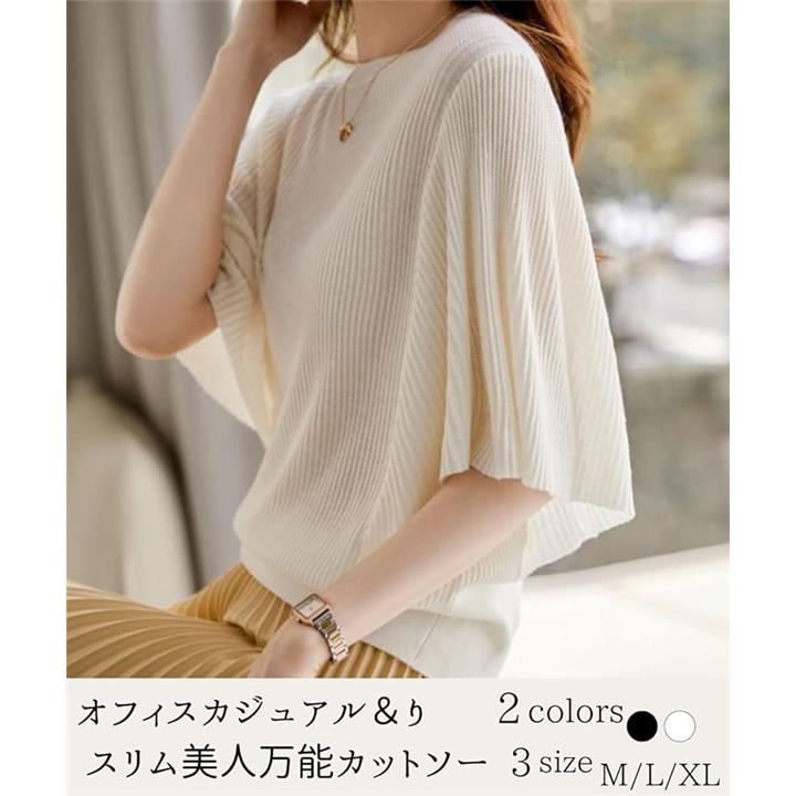 オフィスカジュアル レディース 半袖 カットソー ブラウス トップス 五分袖 服 ゆったり 大きいサイズ 涼しい きれいめ 事務服 半袖ブラウス