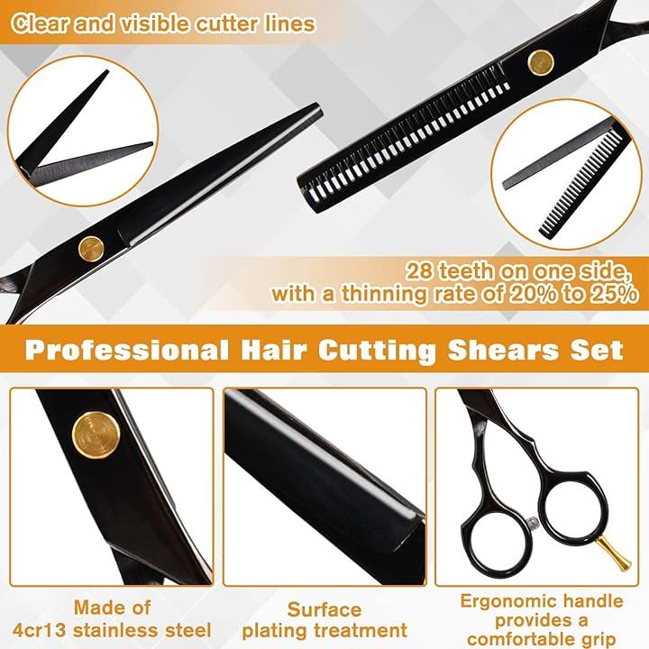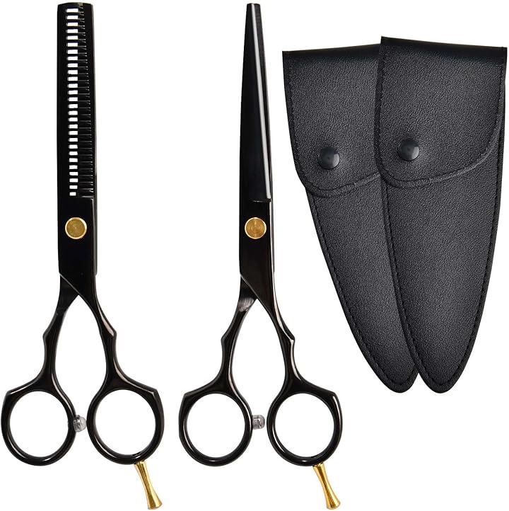 2本セット 散髪ハサミ 髪切りハサミ すきばさみ カット 散髪カット ヘアカット鋏 歯はさみ セルフカット カットはさみ 革製のカバー付 プロ 人間工学