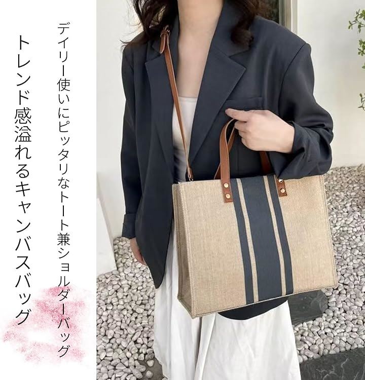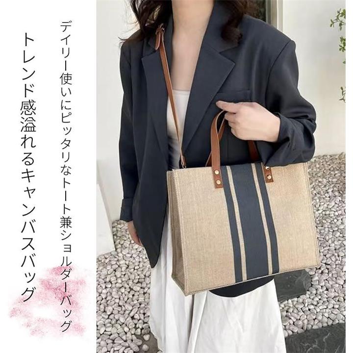 ショルダー バッグ トート 2way キャンバス 生地 マグネット バックル ファスナー ポケット レディース カジュアル