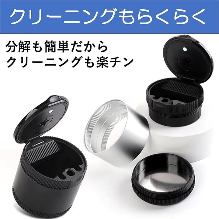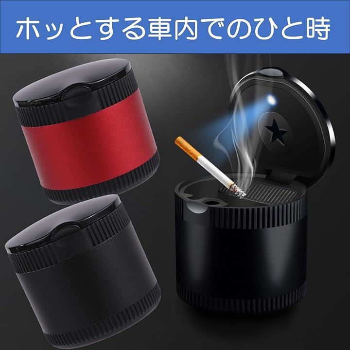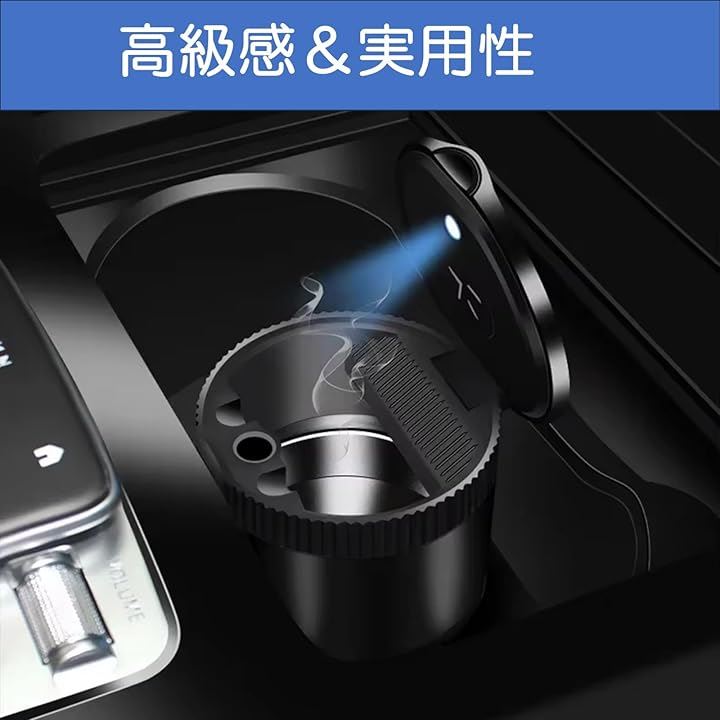 車用灰皿 LEDライト付き 臭い漏れ防止 車の灰皿