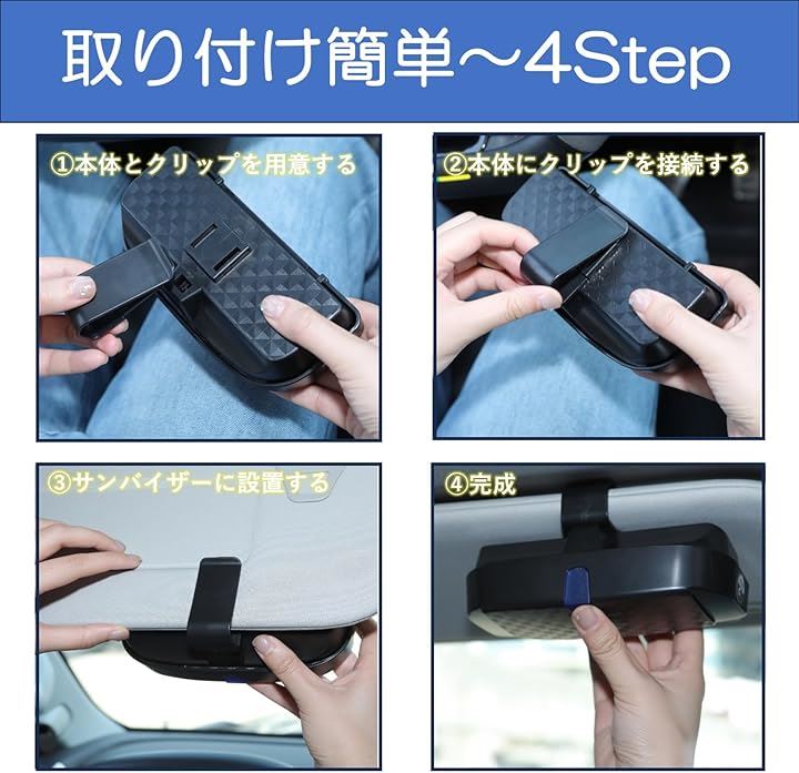 車用 メガネホルダー サンバイザー 収納 車眼鏡ホルダー カード収納クリップ