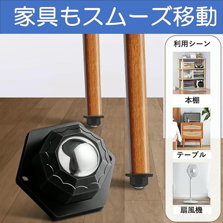 ボールキャスター 家具移動用 粘着テープ式 8個セット ステンレスボール