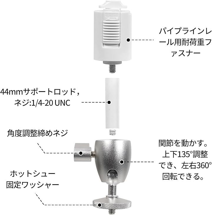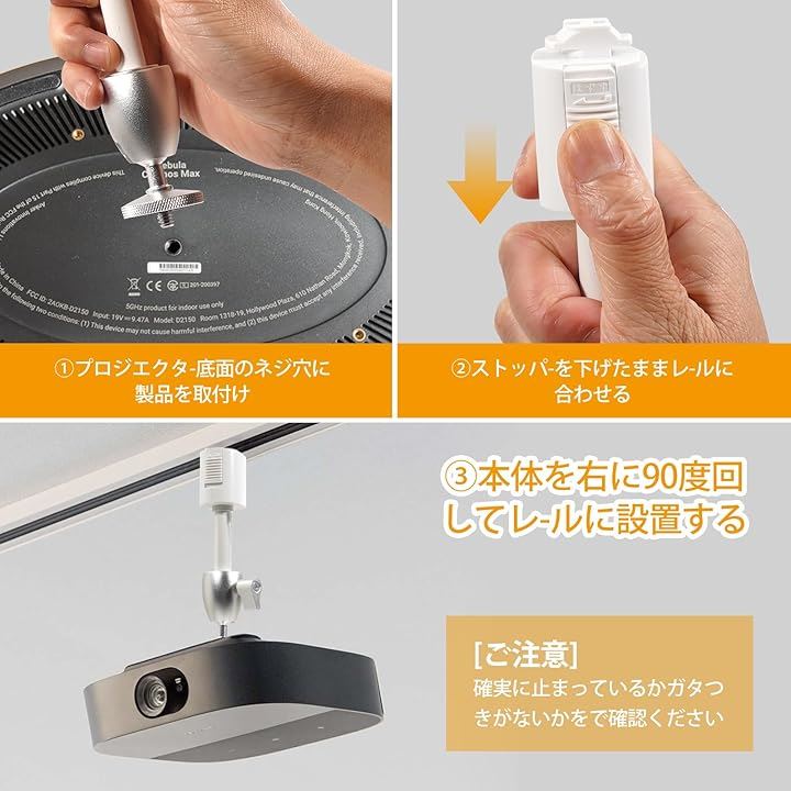 プロジェクタハンガー プロジェクター取付部品 ダクトレール式 1/4インチ ネジ 耐荷重5Kg ブラケットプロジェクター取付用 角度調整が可能 高さ2段階調整
