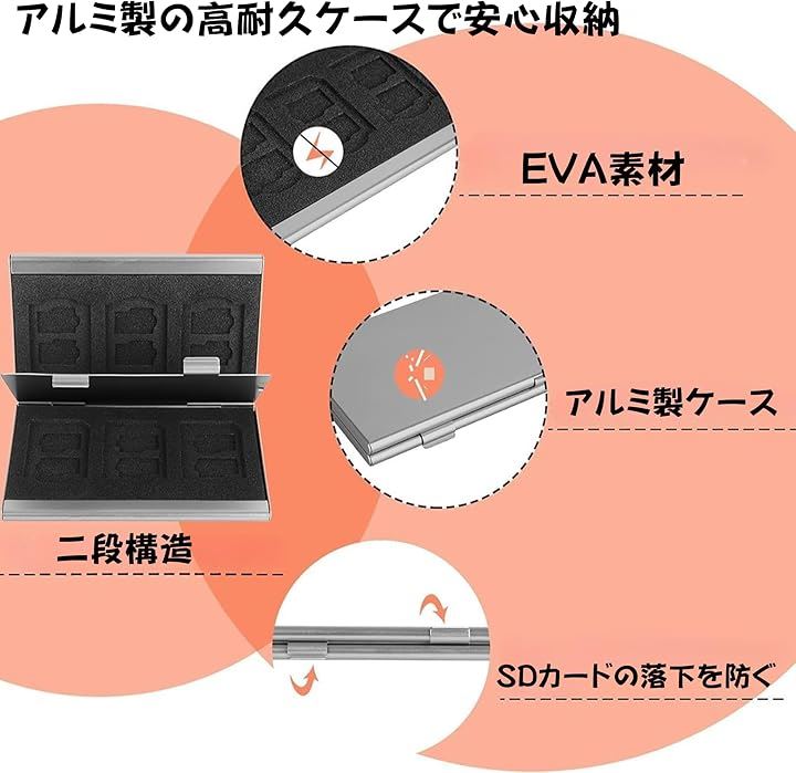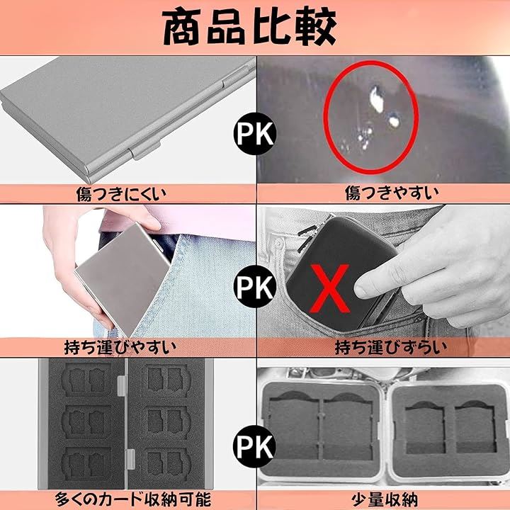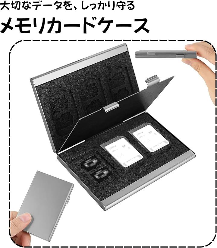 メモリーカードケース アルミ製 SDカード収納 コンパクト 保護ケース カード整理 持ち運び便利