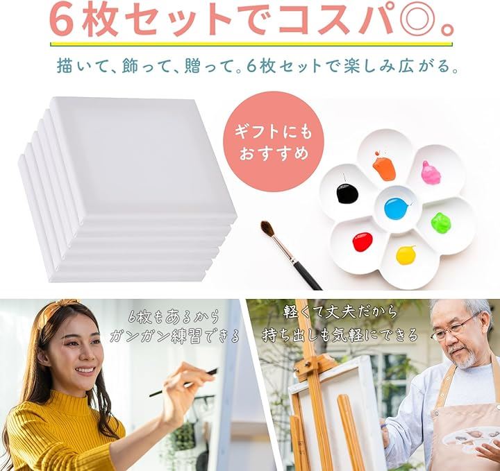 キャンバスボード ミニ 正方形 6枚セット 油絵 画材 キャンバスペーパー ファーストアート