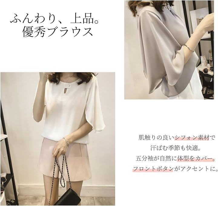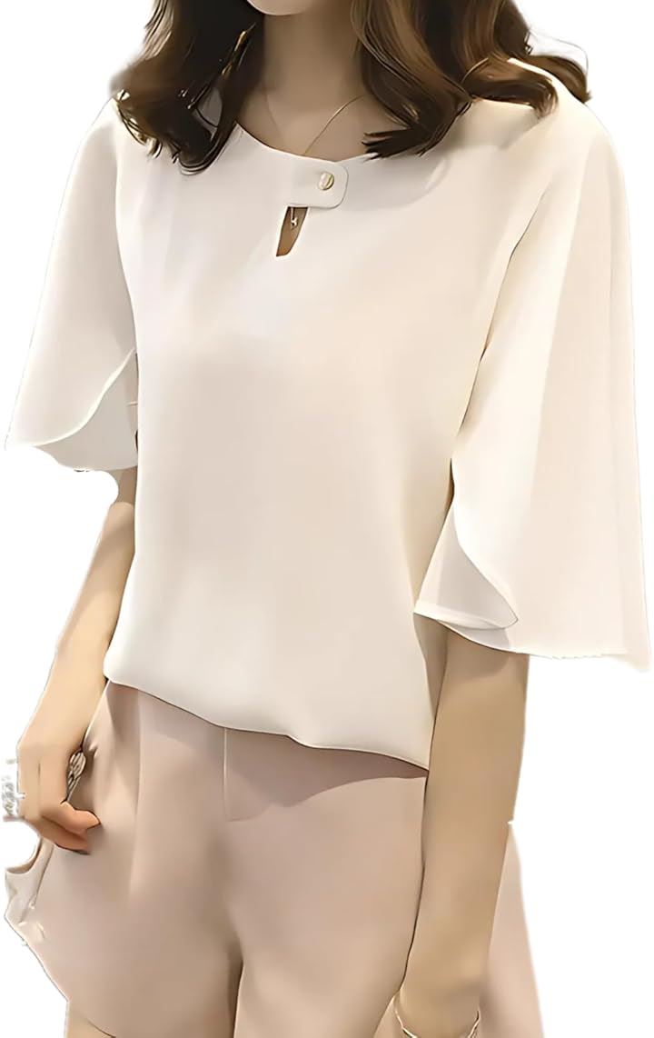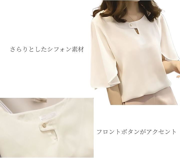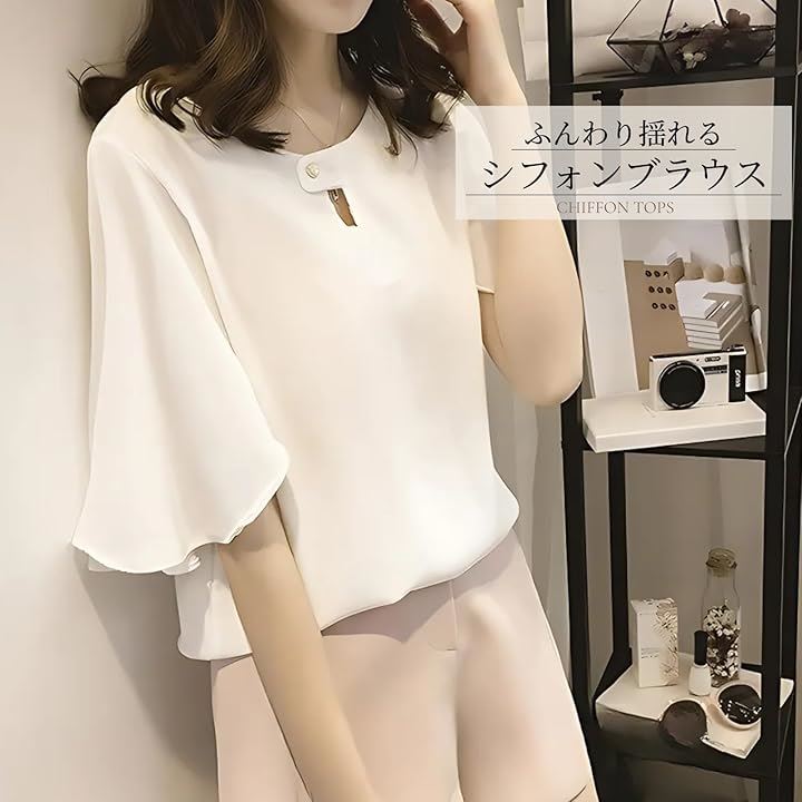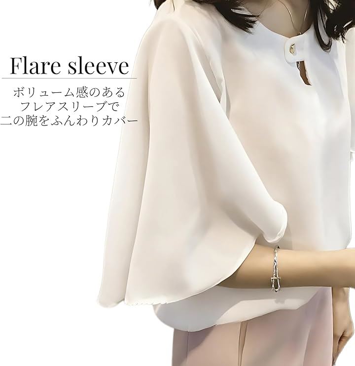 レディース トップス シフォン ブラウス ドレス シャツ フレア スリーブ 袖 半袖 体型 カバー 大人 上品 かわいい きれいめ 通勤 とろみ フォーマル