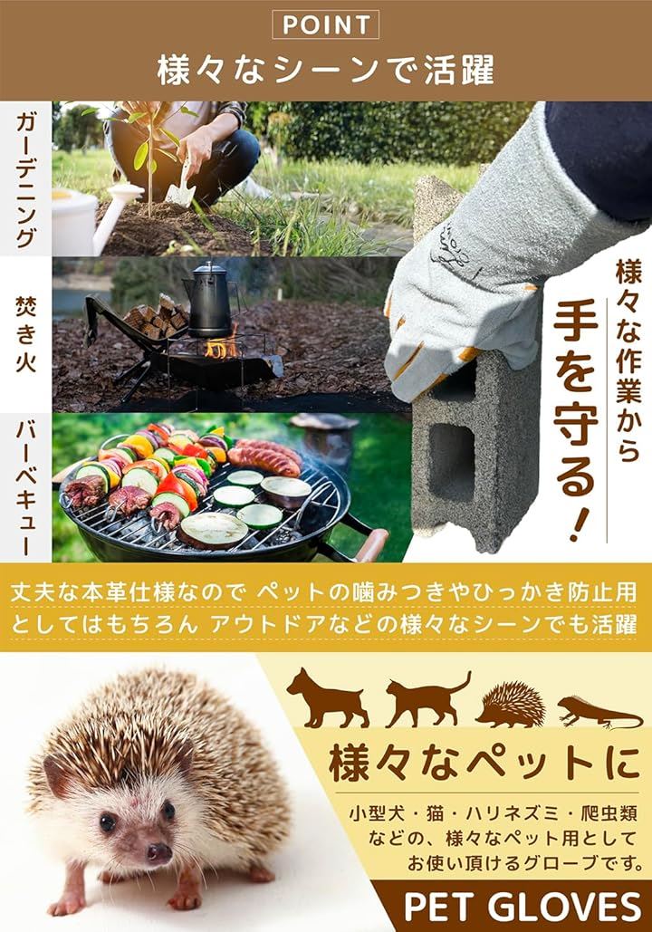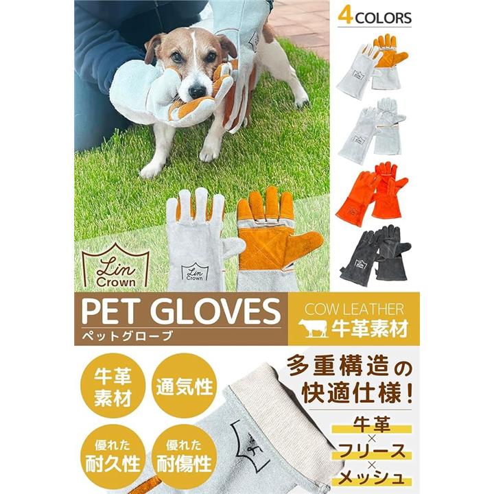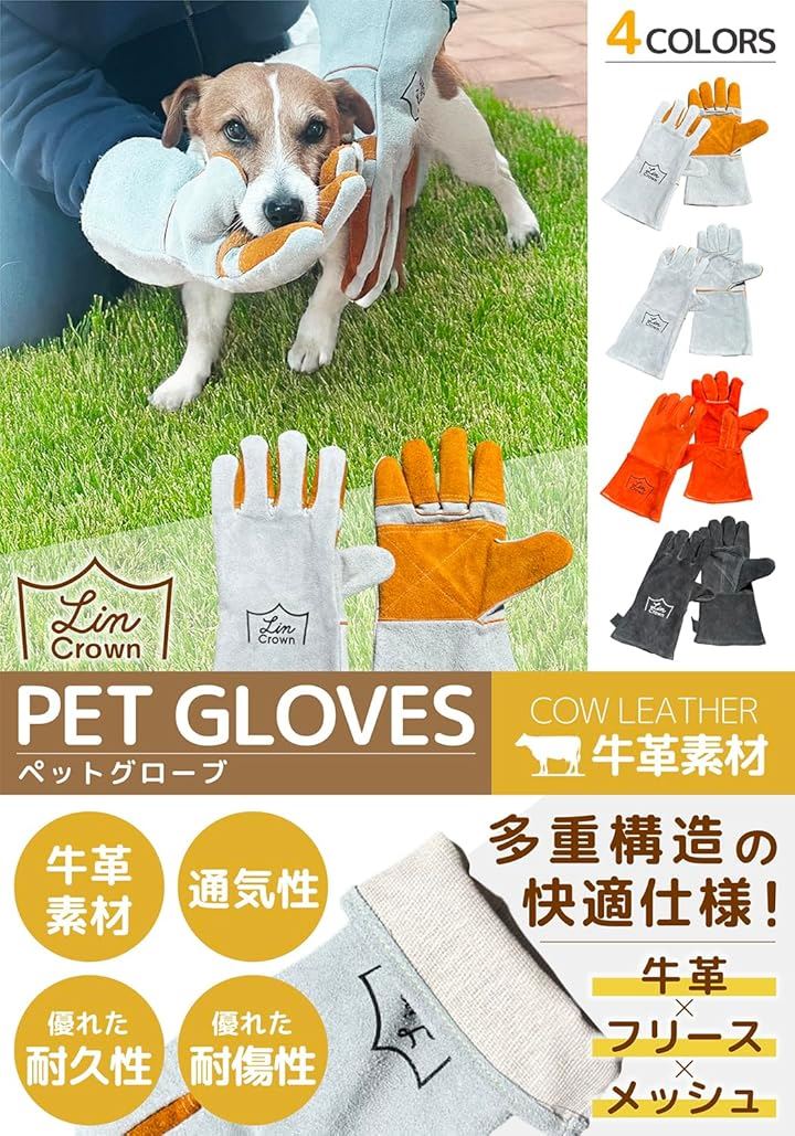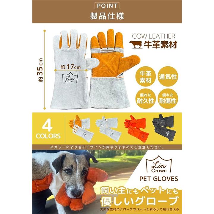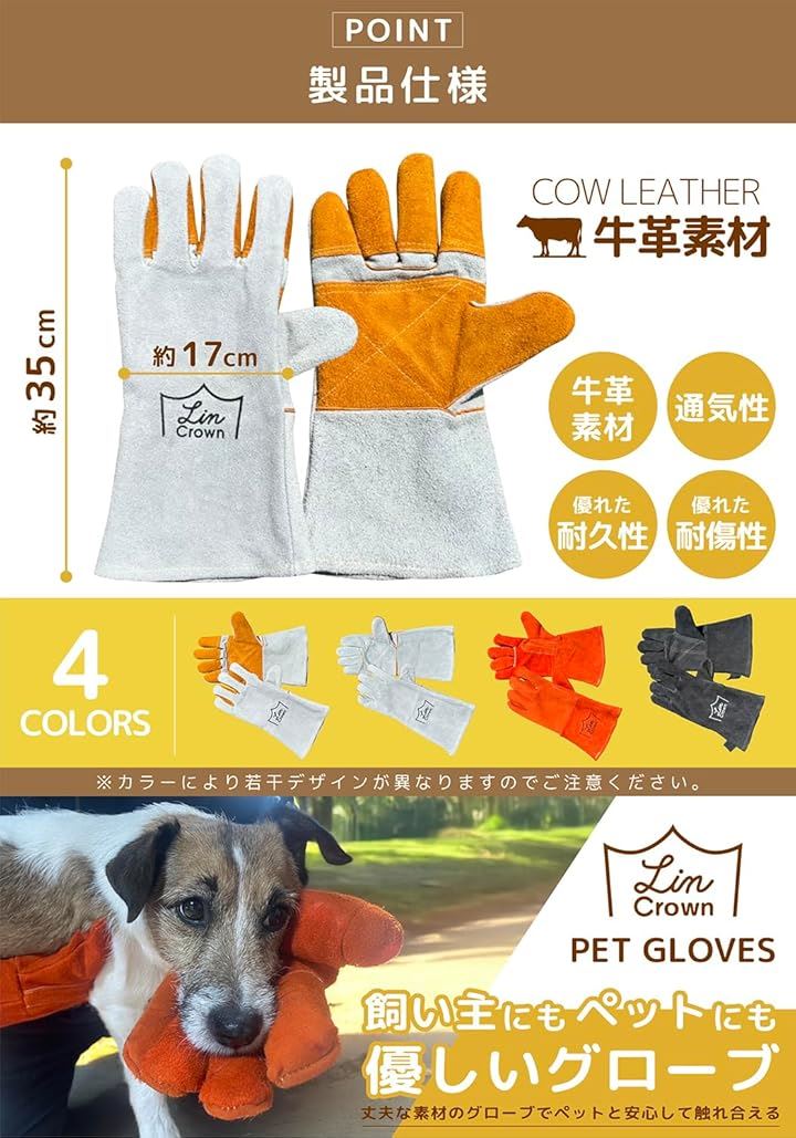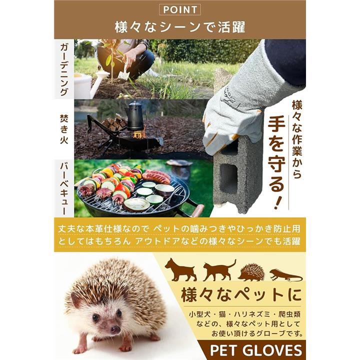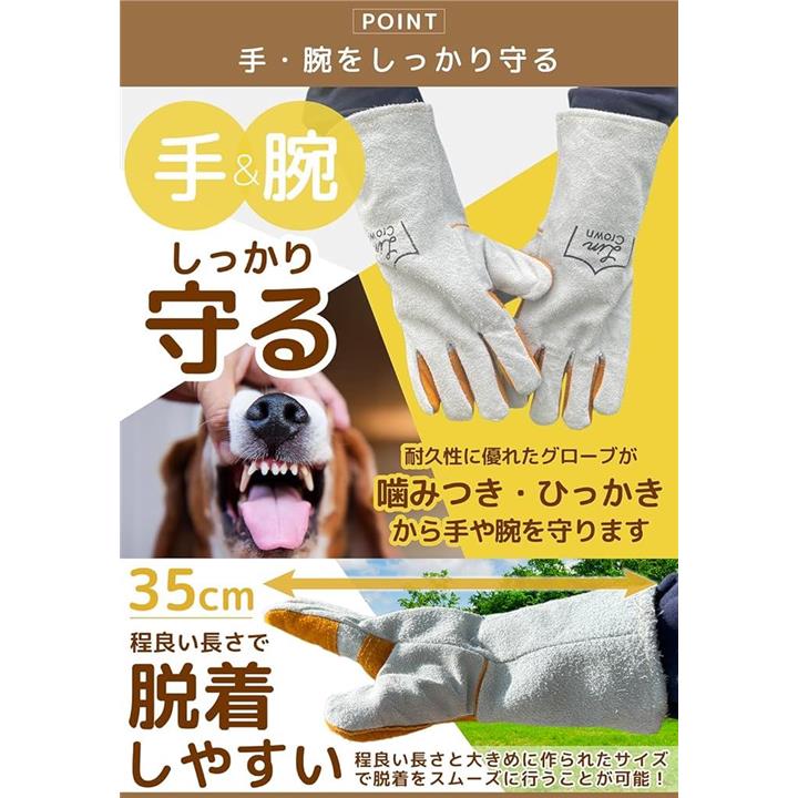 ペットグローブ 噛みつき防止 引っ掻き 保護 手袋 厚手 ロング 牛革 犬 猫 鳥