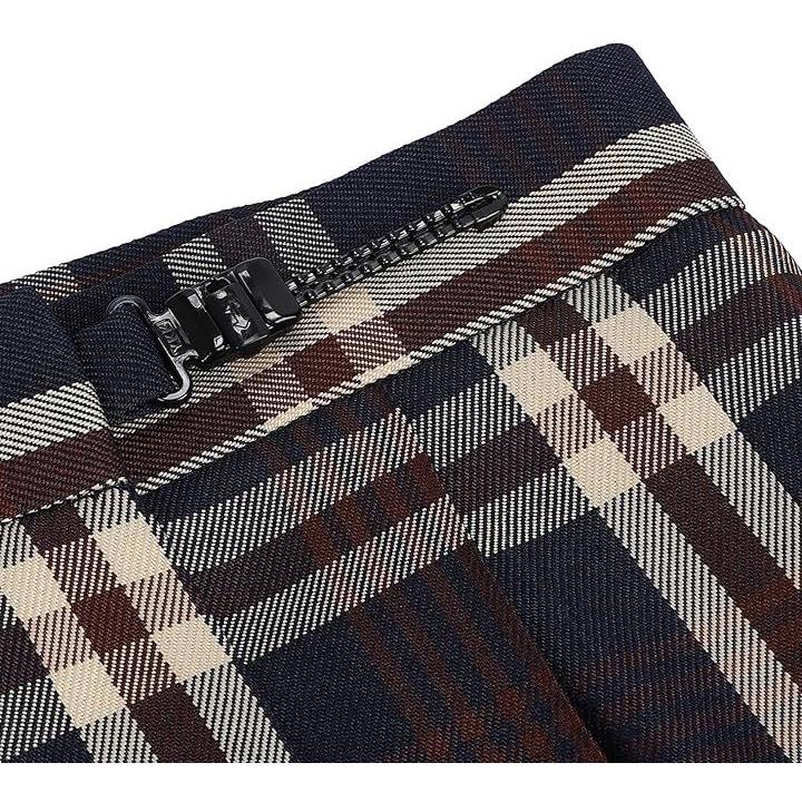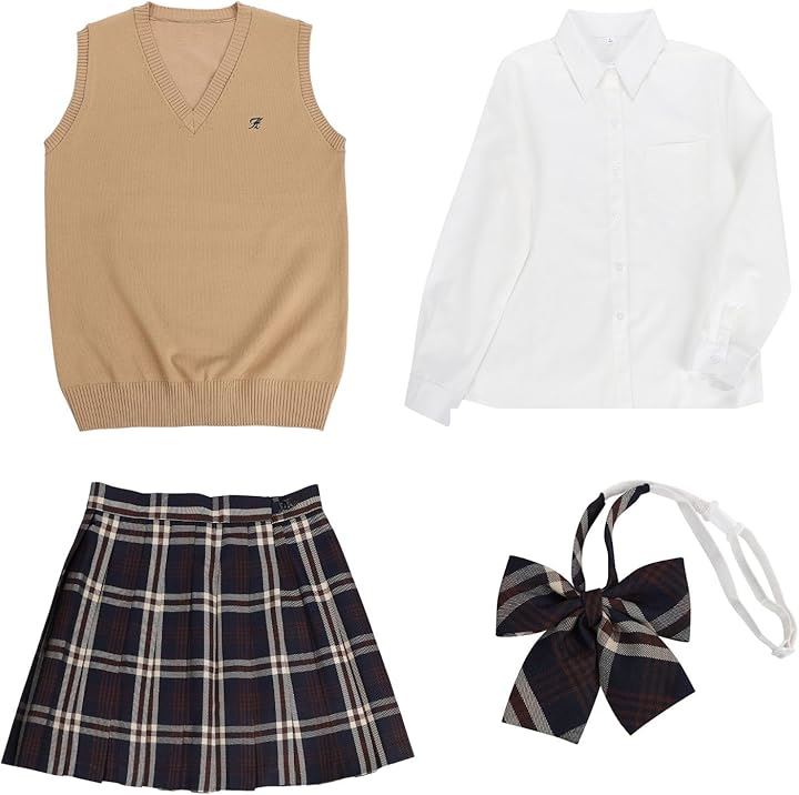 制服 女子高生 コスプレ ニット チェックスカート 長袖シャツ リボン かわいい 洗える 4点 セット ブラウン系