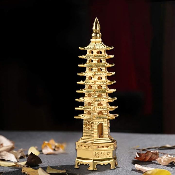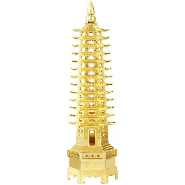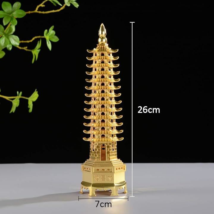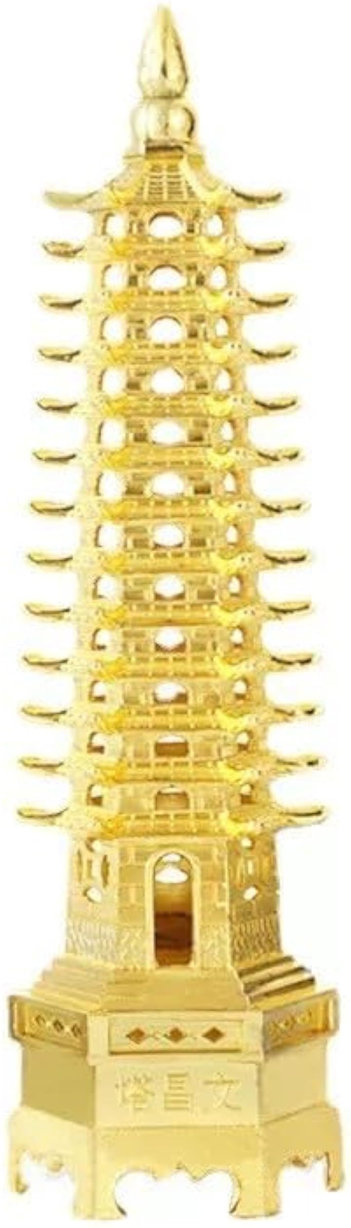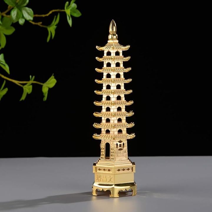 風水グッズ 文昌塔 もんしょうとう 金メッキ 高さ26cm 13層構造 六角台座付き