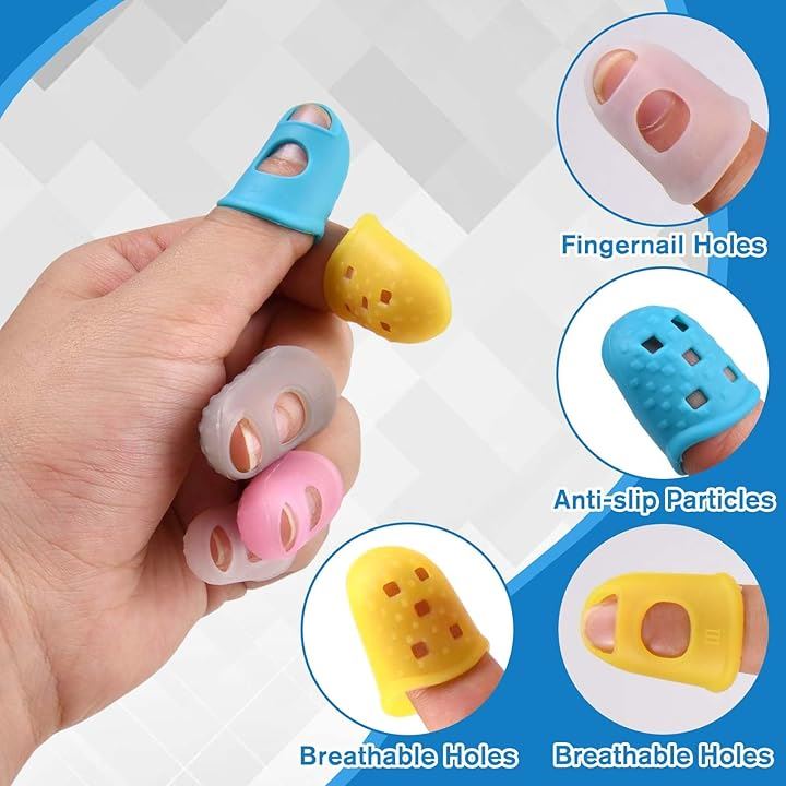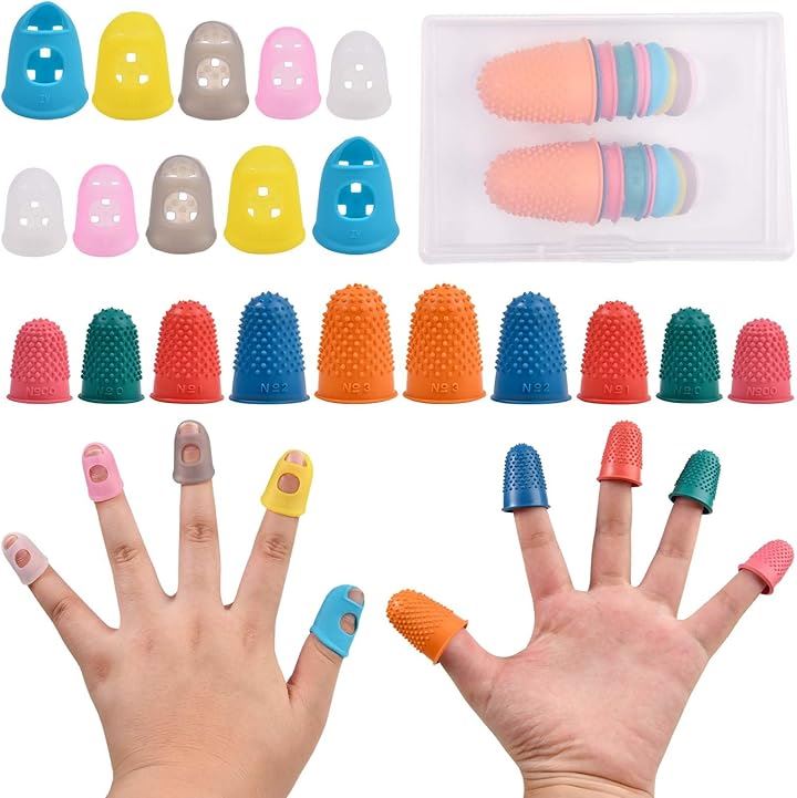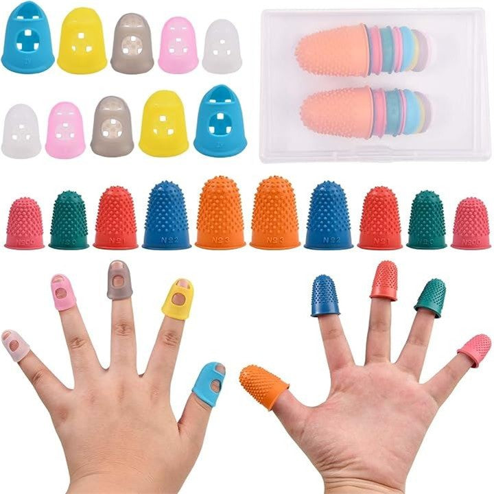 紙めくり 指サック 事務用 滑り止め 穴あき 指先保護サック シリコンゴム製 ギター 指先プロテクター バイオリン ベース ピアノ 弦楽器用 キャップタイプ 指保護 S/M/L/XLサイズ 20個入り