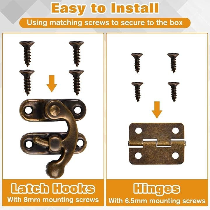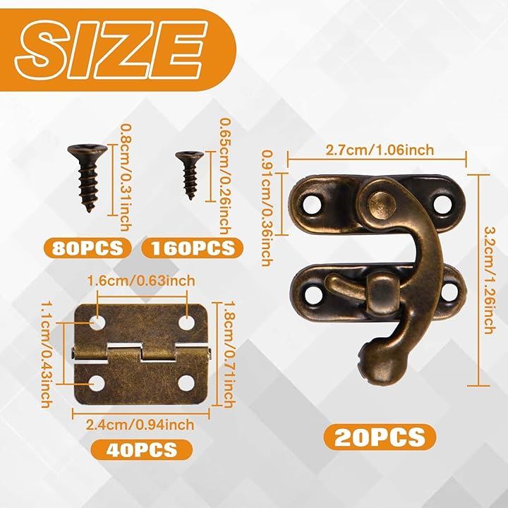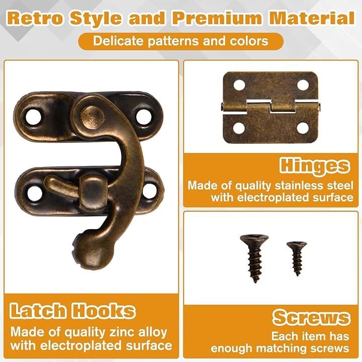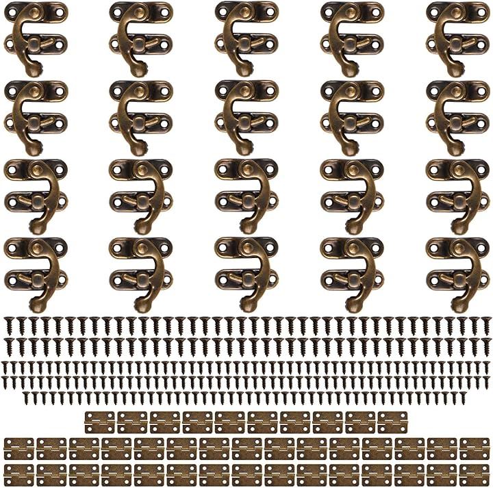 20個 スイングアーム 右ラッチフック留め金 ジュエリーボックスハスプ フックロックラッチ 亜鉛合金 木製ジュエリーボックス 装飾ホーンロック 収納用 小箱蝶番 対応するネジと共に