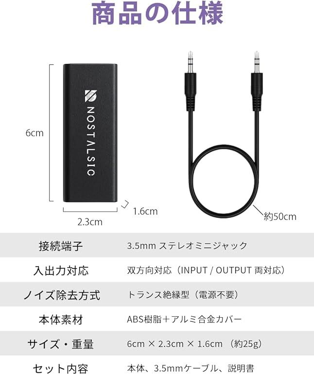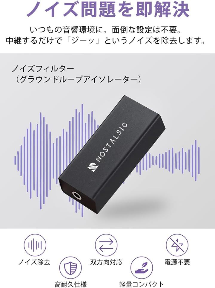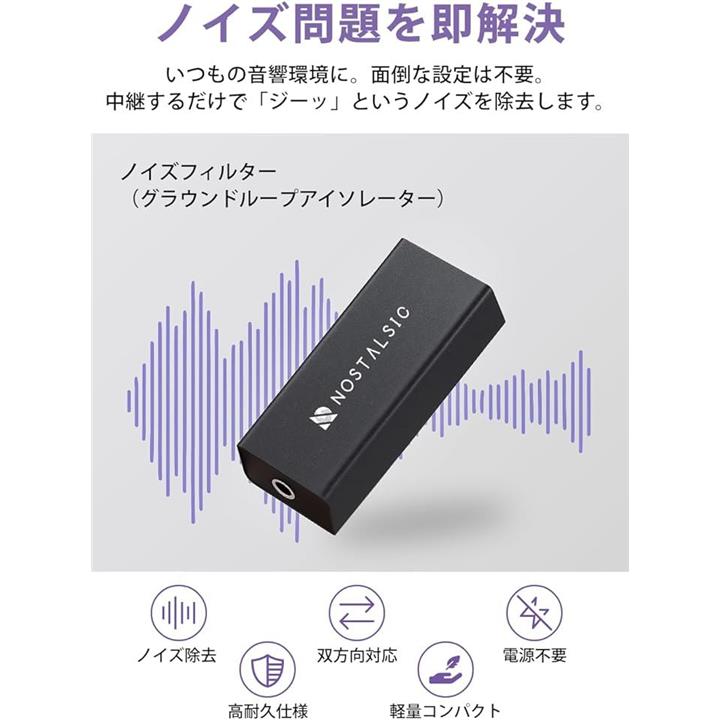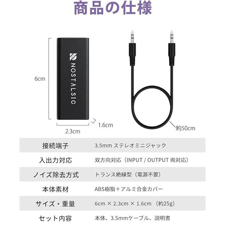 ノイズフィルター グランドループ アイソレーター3.5mm AUX対応 ノイズ除去 双方向対応 電源不要 軽量コンパクト カーオーディオ/PC/スマホ/スピーカー/Bluetooth機器 等