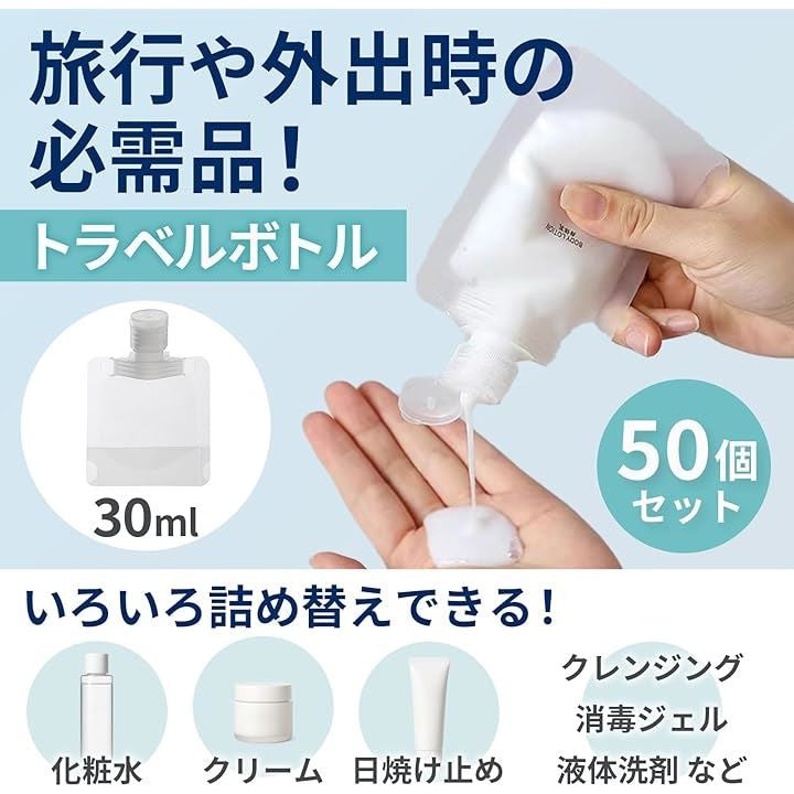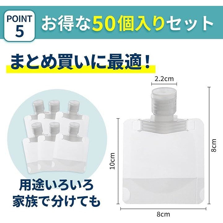 トラベルボトル 50個 シャンプー パウチ容器 小分けボトル 詰め替えボトル 旅行 使い捨て