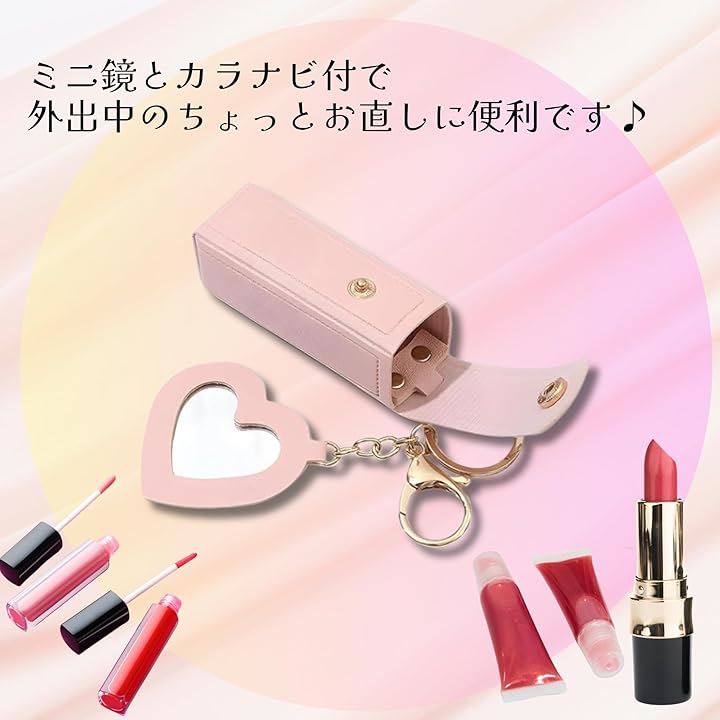 リップスティックホルダー カラビナ付き 収納ケース コンパクト おしゃれ プレゼント 持ち運び 携帯用 ミラー付き