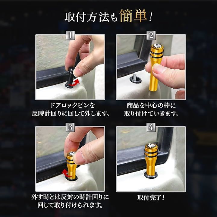 ドア ロック ピン トラック 軽 自動車 ユニバーサル パーツ アルミ 汎用 suv 交換 内装 アクセサリ ドレスアップ 4個