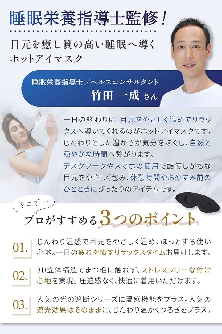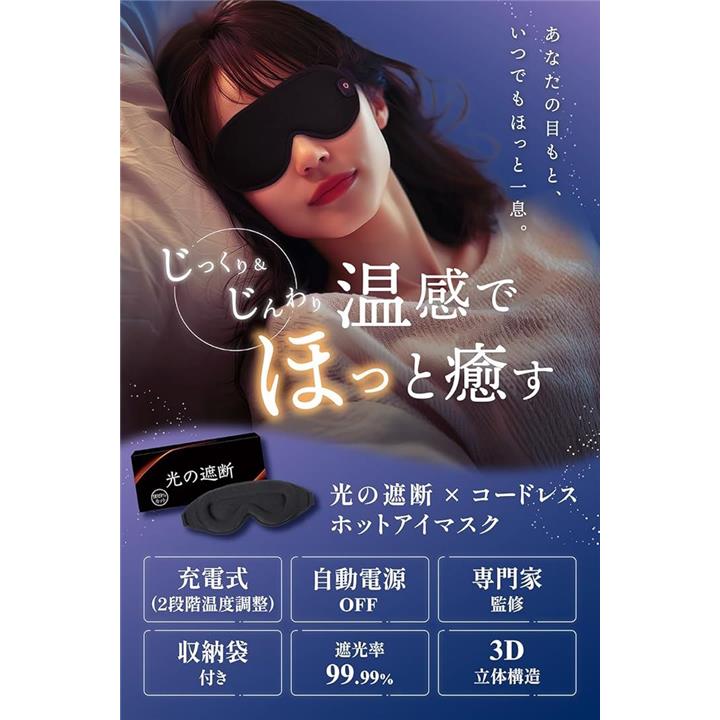 光の遮断 ホットアイマスク 充電式 3D立体型 睡眠栄養指導士監修 繰り返し使える アイリラックス アイケア 目を温める 男女兼用