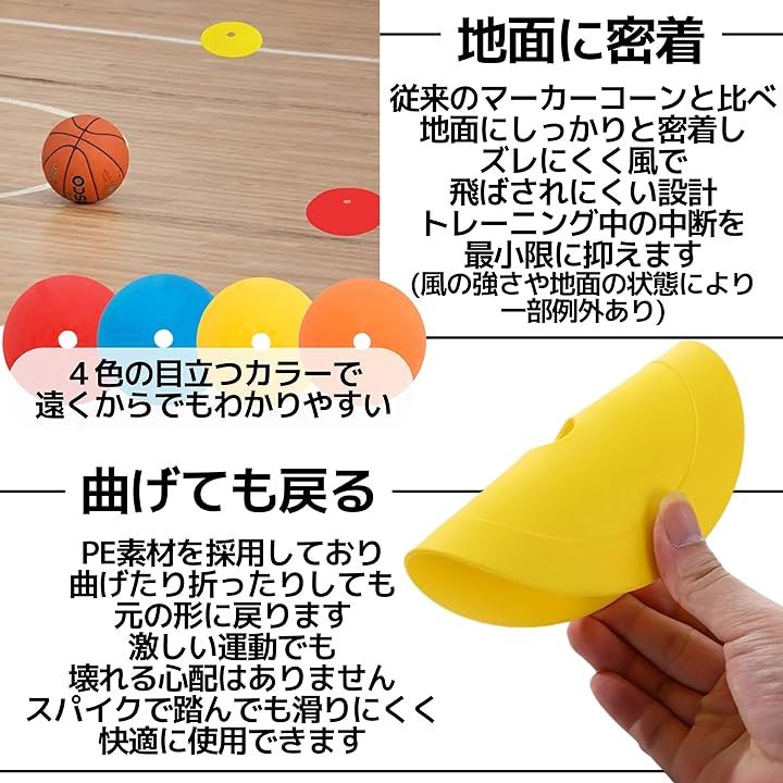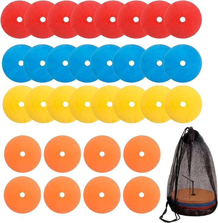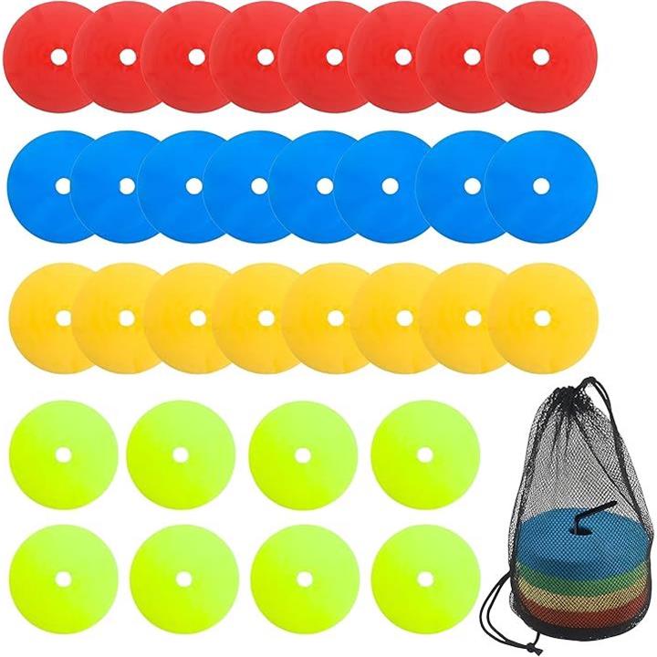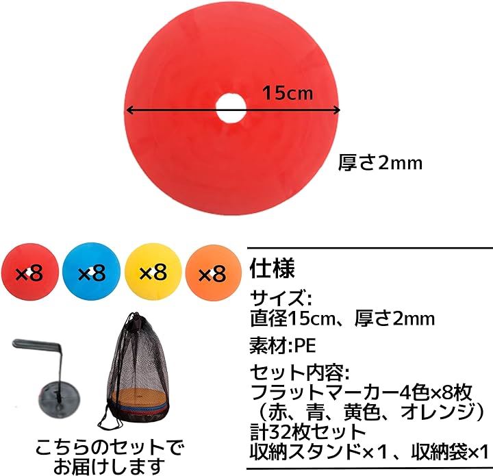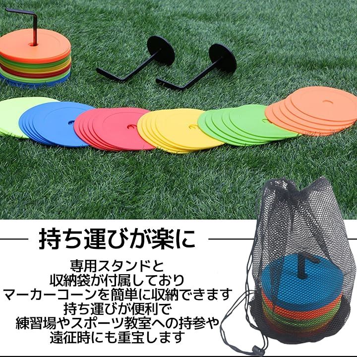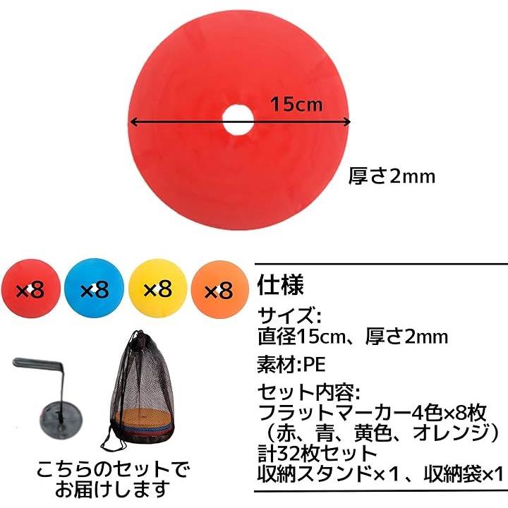 フラットマーカー マーカーコーン フラットコーン サッカー フットサル 4色 32枚セット スタンド 収納袋付