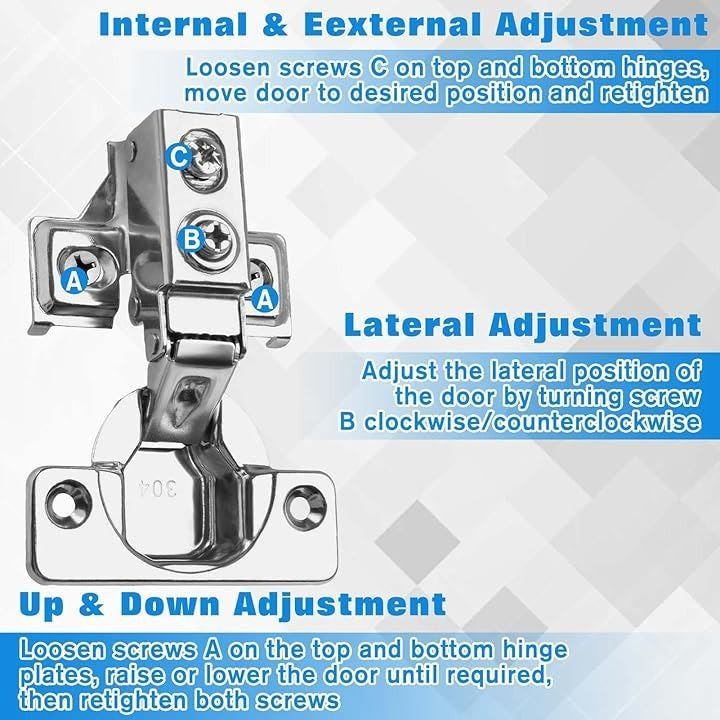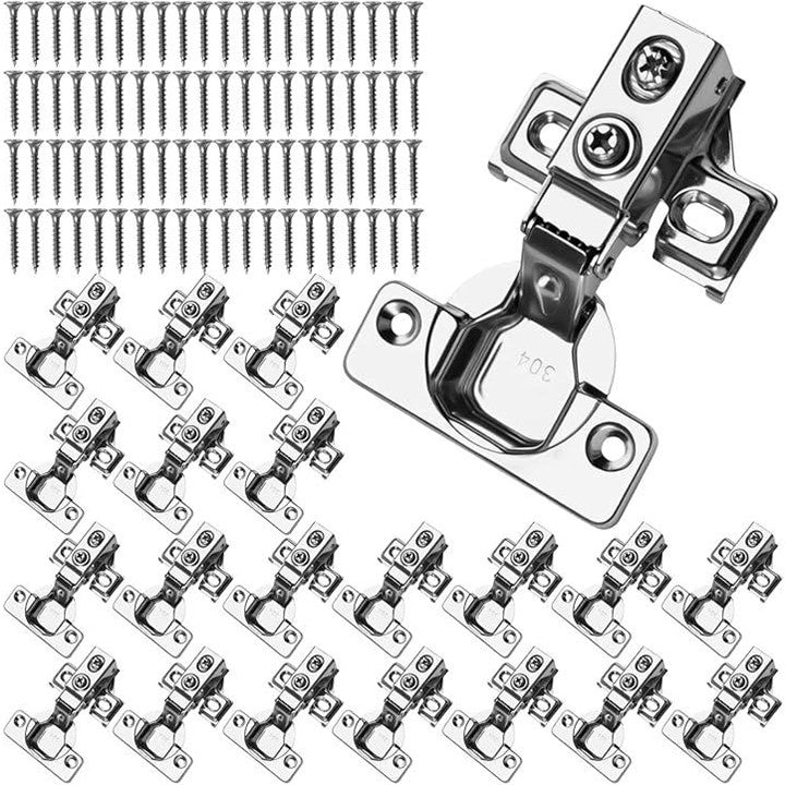 20個セット スライド丁番 隠れヒンジ ショートアームキッチンキャビネットヒンジ ソフトクロージングキャビネットヒンジ フルオーバーレイキャビネットドアヒンジ ステンレス 蝶ネジ付き