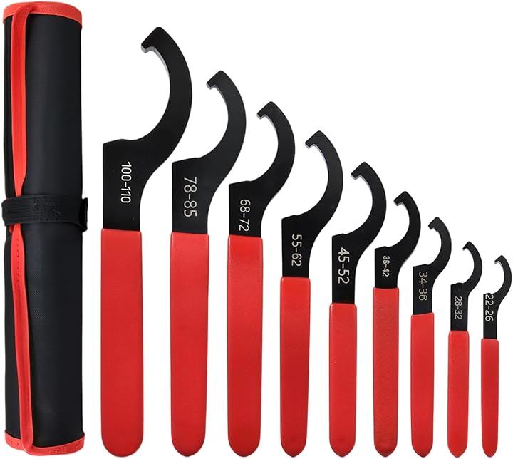 9本セット フックレンチ 引掛ピンスパナ 引っ掛け コイルオーバー C型スパナレンチ 滑り止め 握りやすい 自動車用ハンドツール 収納ポーチ付き