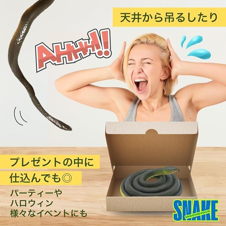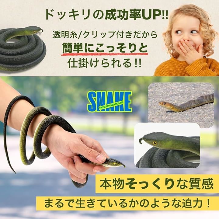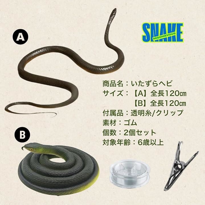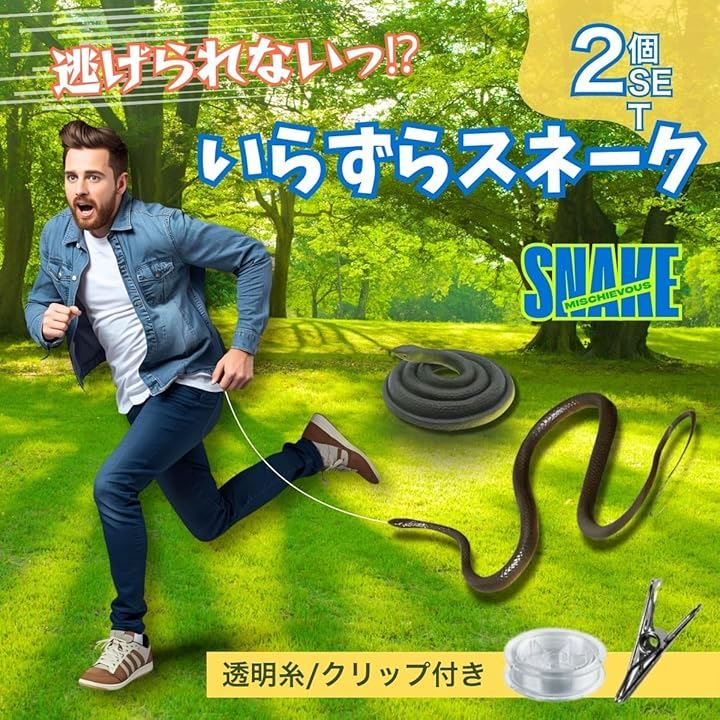 蛇 フェイクヘビ ドッキリ おもちゃ いたずら リアル 2個 透明糸 クリップ付