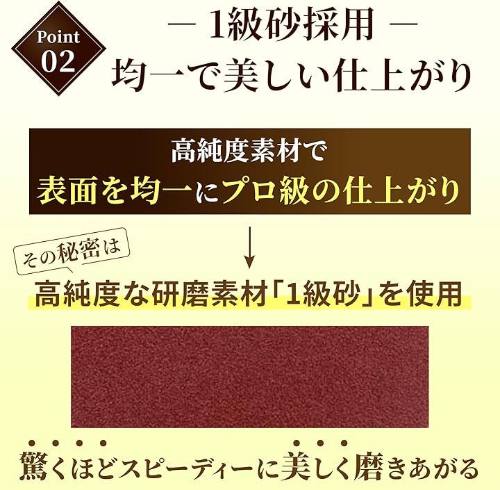 幅広い用途 : 木工の下地処理や金属の研磨、サビ落とし、塗装前の目荒らし、パテ研磨、塗膜の除去など、DIYからプロ作業まで多目的に使用可能。