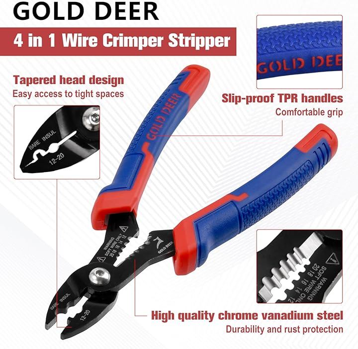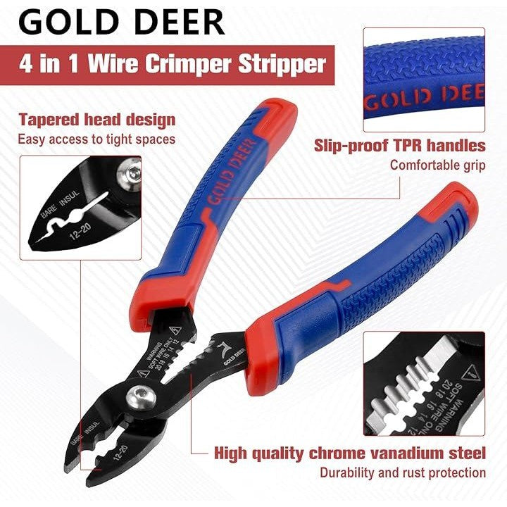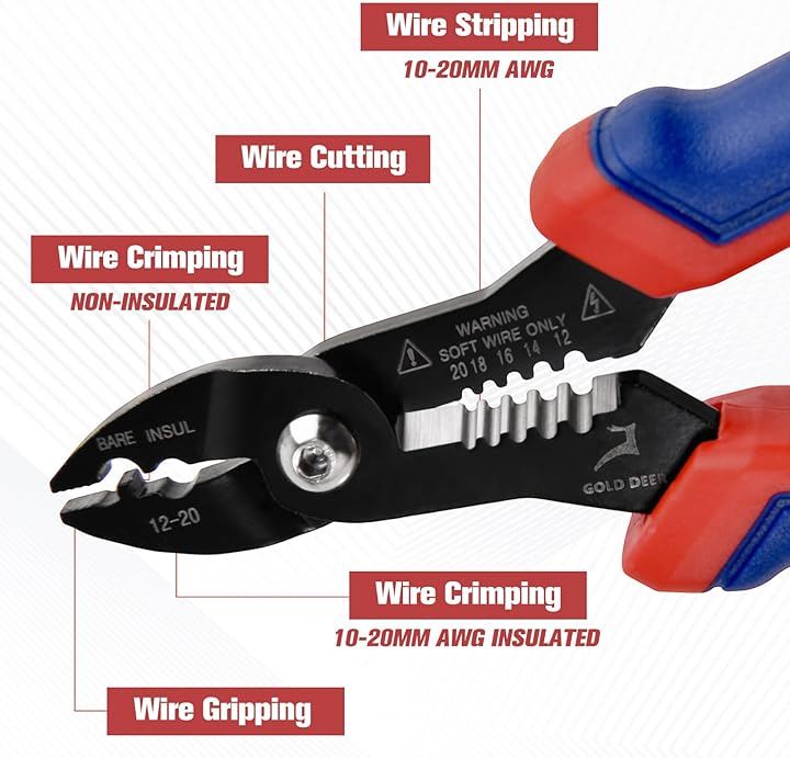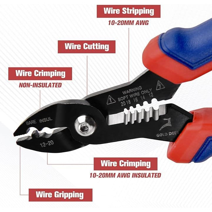 電工ペンチ ワイヤーストリッパー 4つの作業を1本で 全長175mm ギボシ端子 圧着工具 多機能ペンチ ケーブルストリッパー ハンドストリッパー マルチ電線ストリッパー マルチワイヤーストリッパー