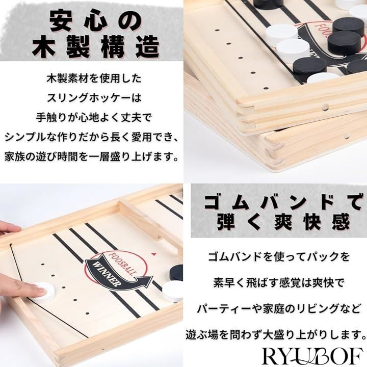 スリングホッケー ボードゲーム 木製 テーブルゲーム 2人対戦 小学生 大人 パーティーゲーム 飲みゲーム 家族向け エアホッケー風 コンパクト
