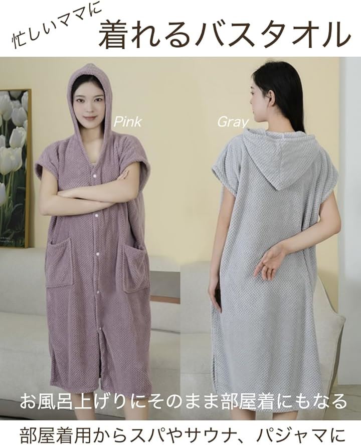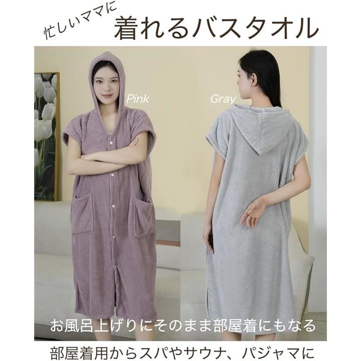 着れるバスタオル バスローブ フード付き ラップタオル 巻きタオル 湯上り スポーツ ジム プール 着替え用 ルームウエア