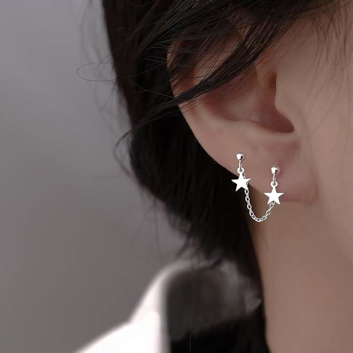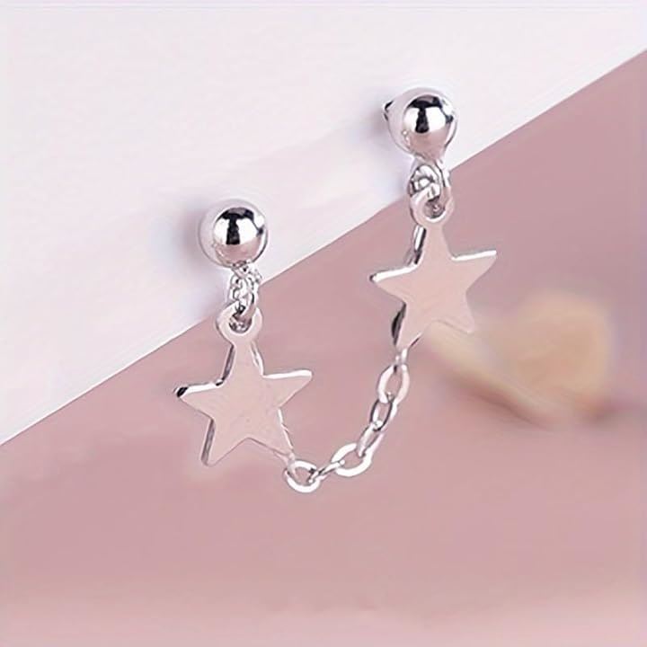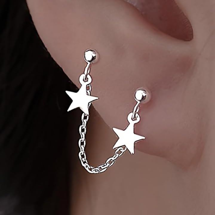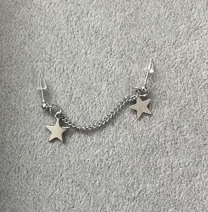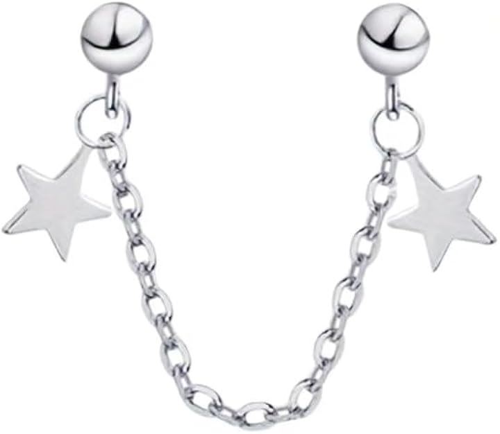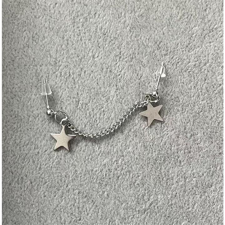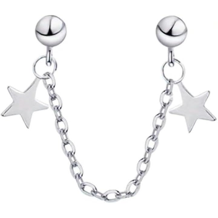 ピアス 二穴 チェーン 片耳 星 スターモチーフ メンズ レディース シルバーカラー 二連スタッド