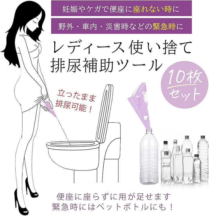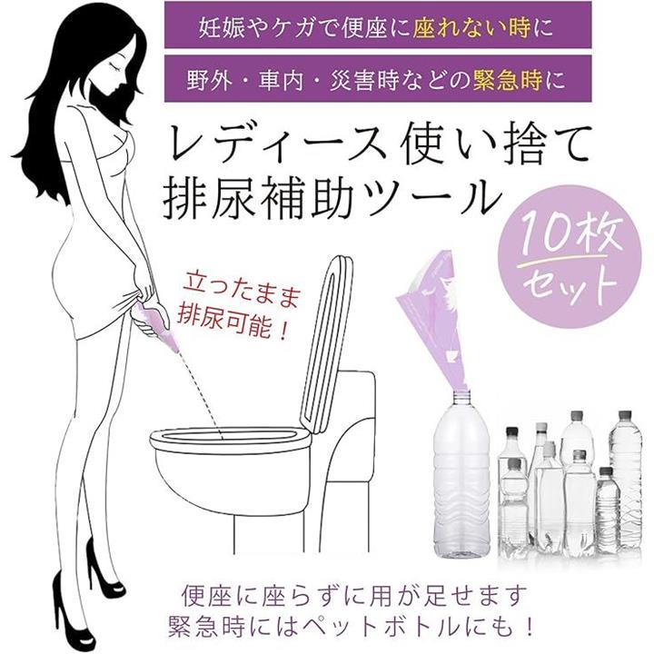 排尿補助 10枚 使い捨て 立ったまま用が足せる 女性 便座に座らず排尿可能 レディース 不衛生なトイレ 妊娠 屋外 防災