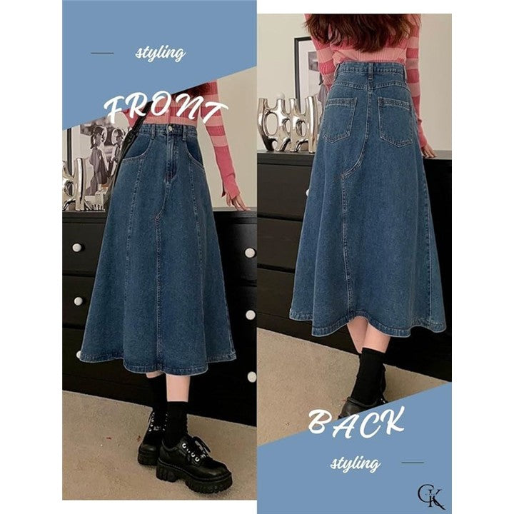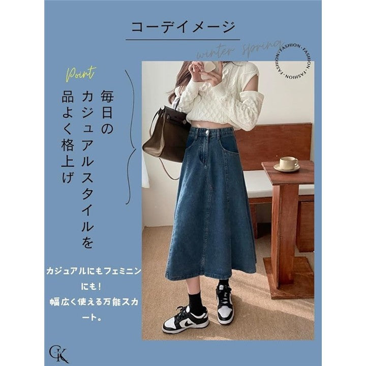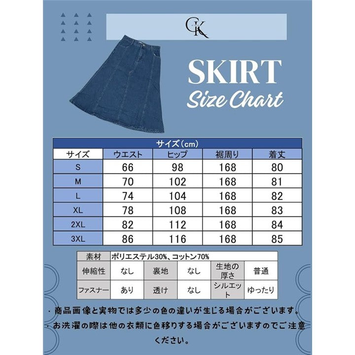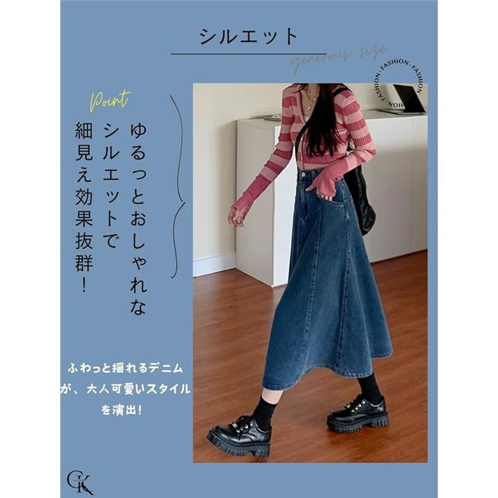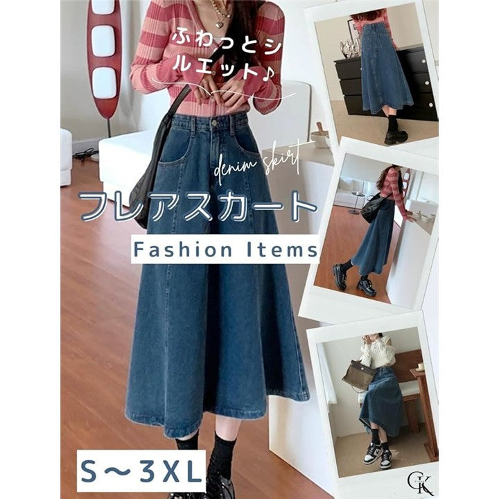 デニム ロングスカート レディース フレア ハイウエスト 大きいサイズ ジーンズ 春