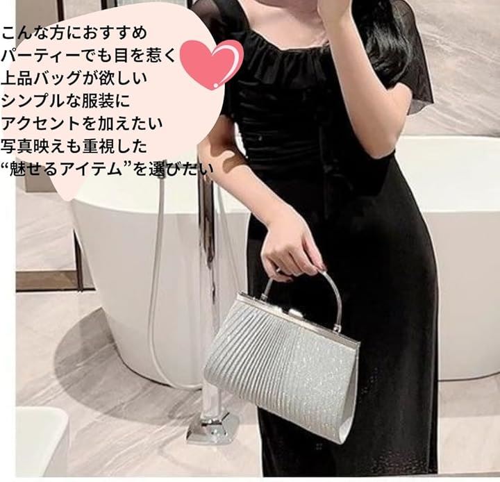 「スタイリングを格上げするデザインと機能性」シンプルながら計算されたシルエットとラメ感が融合したデザインで、持つだけで着こなしを引き締める効果が期待できます。