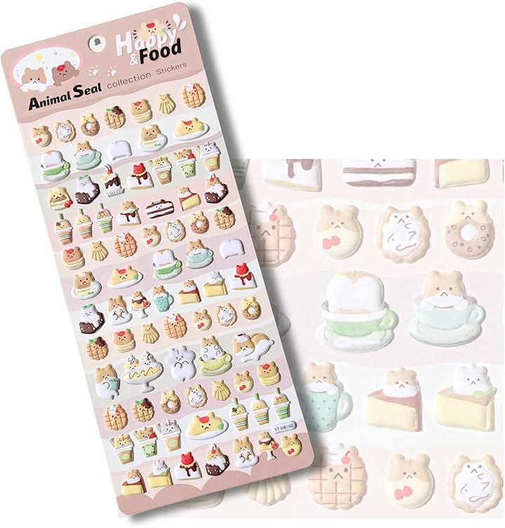 もちもちシール ぷにぷに もっちり アニマル&フード かわいい ステッカー 手帳 スマホ デコ