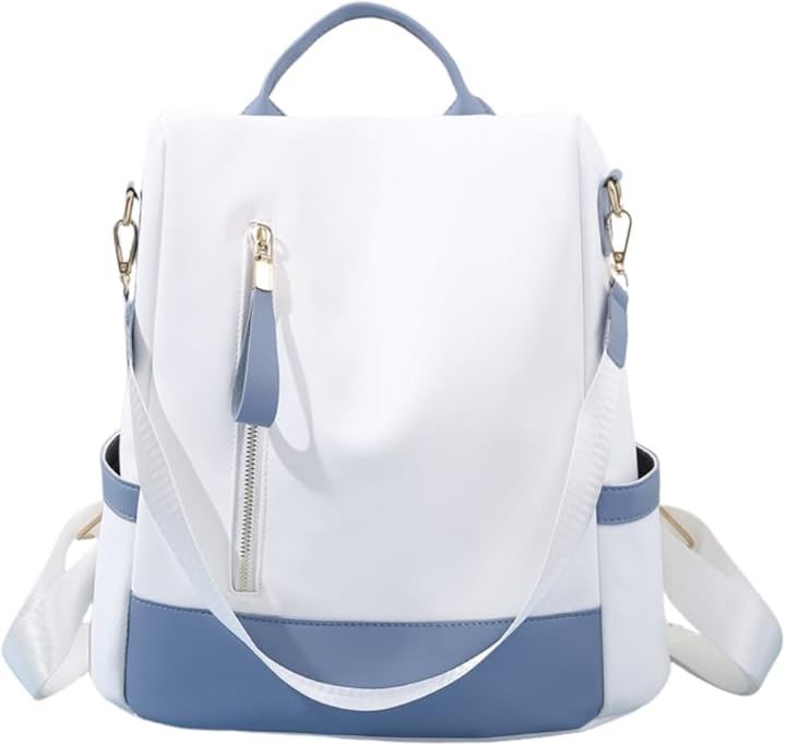 「コーデに合わせやすい配色と上品な印象」ホワイトをベースに、ブルー、ピンク、ブラックなどのカラーを組み合わせたバイカラーデザインで、落ち着きと華やかさを兼ね備えた印象に。