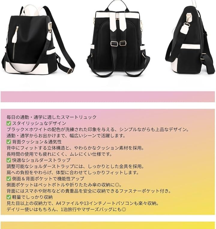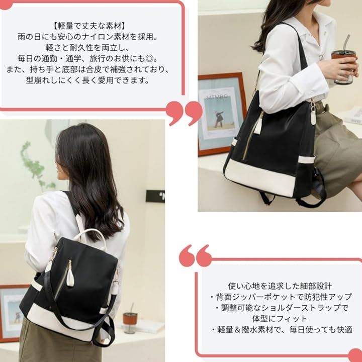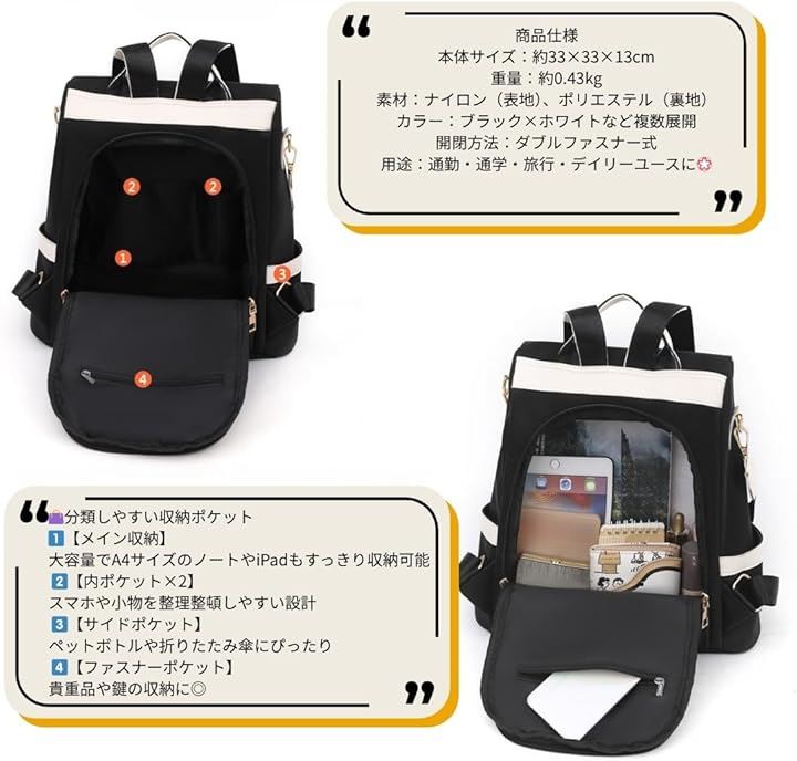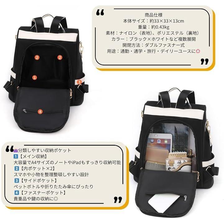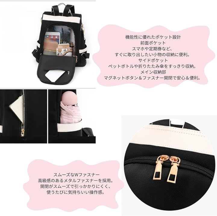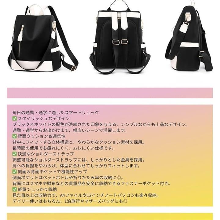 [KIDSMAL] 軽量 撥水 多機能 レディース リュック A4 収納 3Way 通勤 通学 ポケット 盗難 防止 |