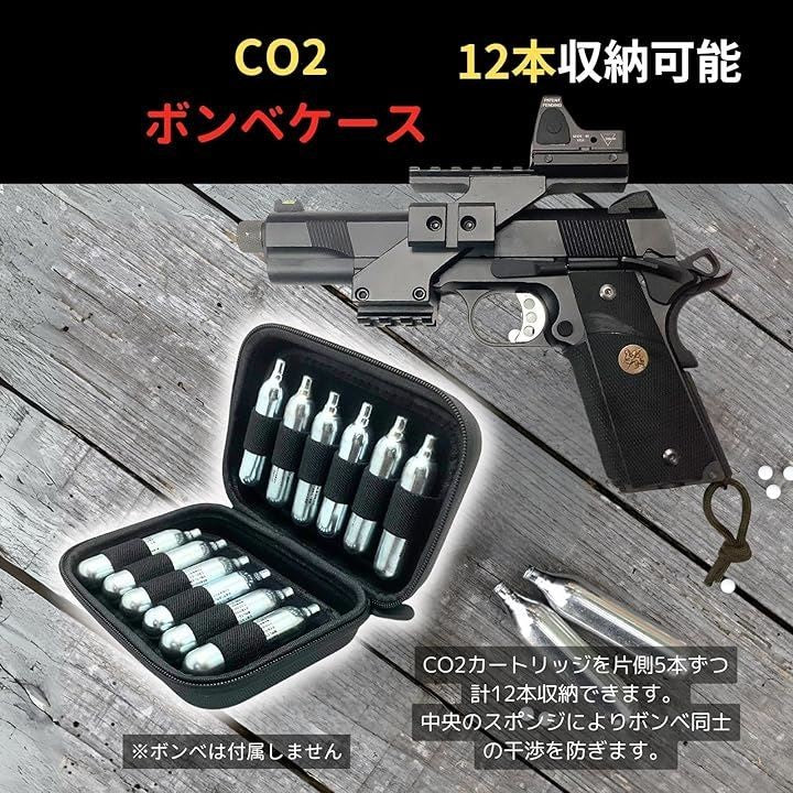 「12本用と10本用が選べるコンパクトで丈夫なセミハードケース設計」CO2カートリッジ12グラムまたは 8グラムを収納可能なCO2カートリッジをスマートに携行可能なセミハードケースです。