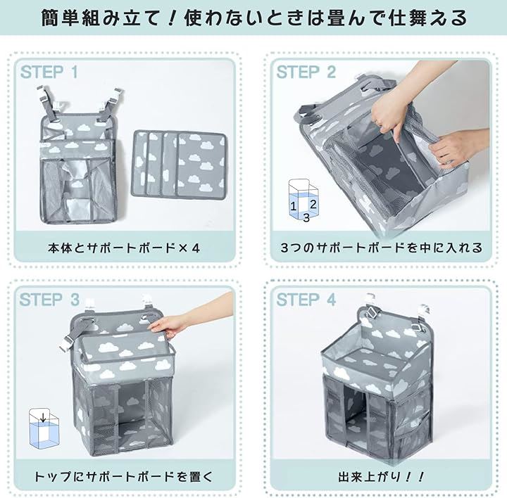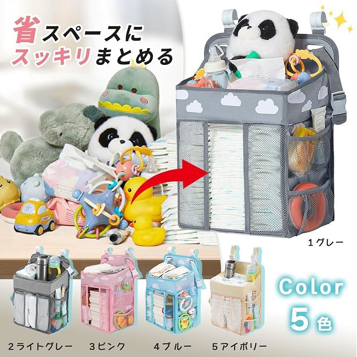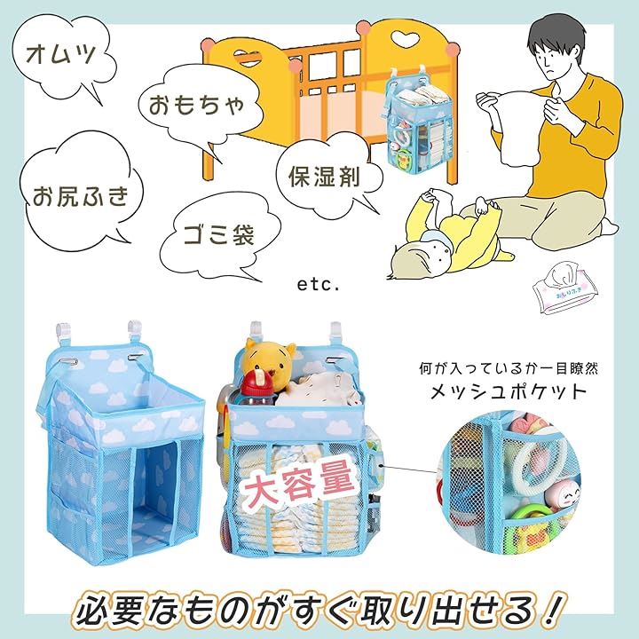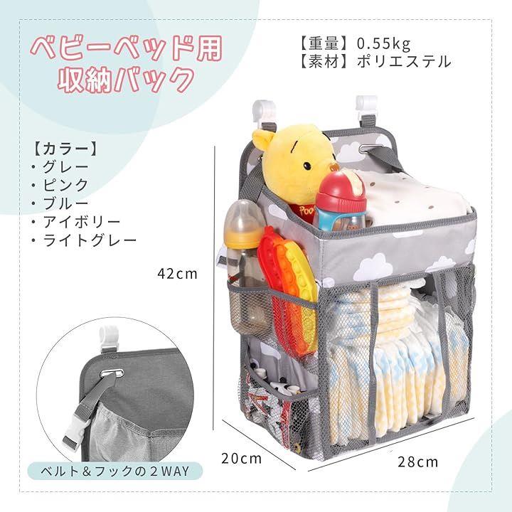 ベビーベッド用 収納バック ベビーカー バッグ おむつ入れ 吊り フック付き おもちゃ 整理