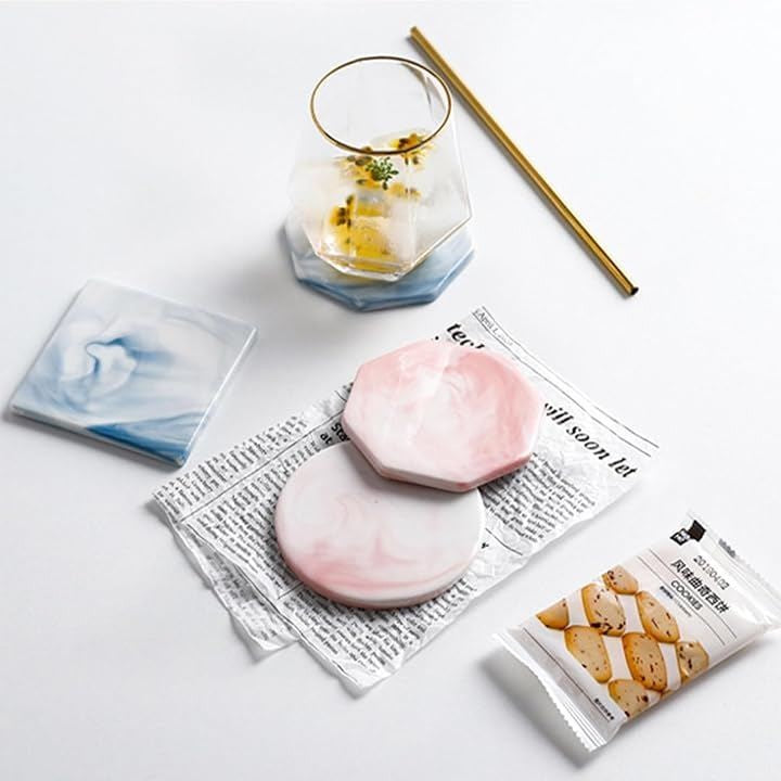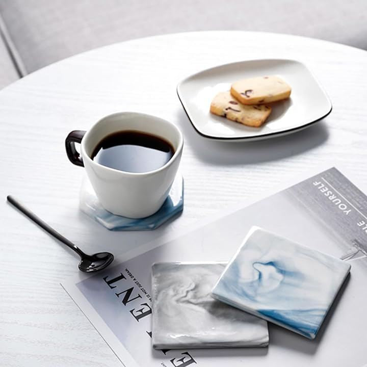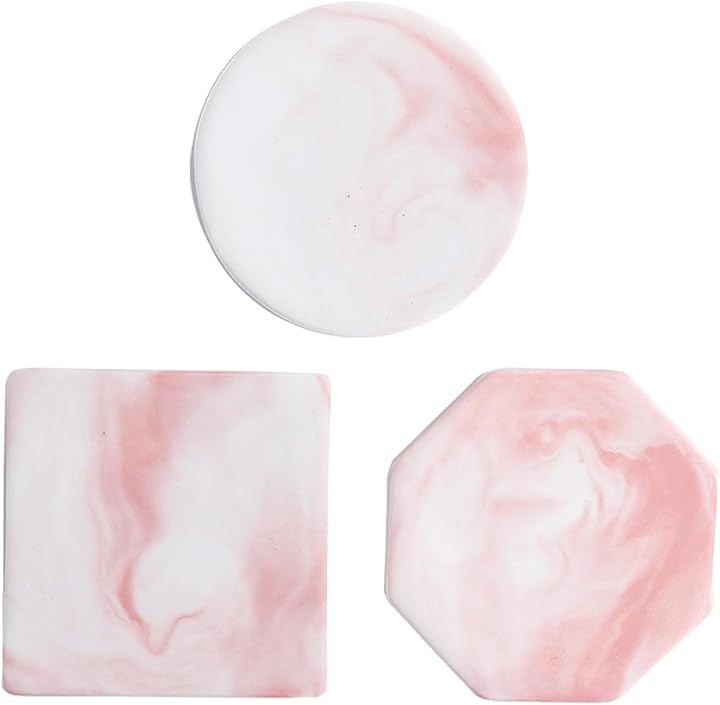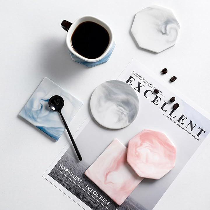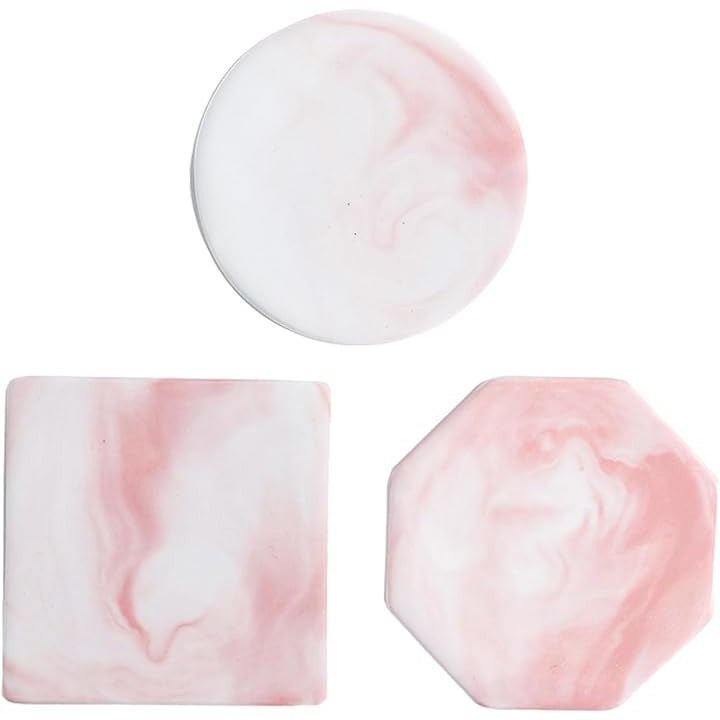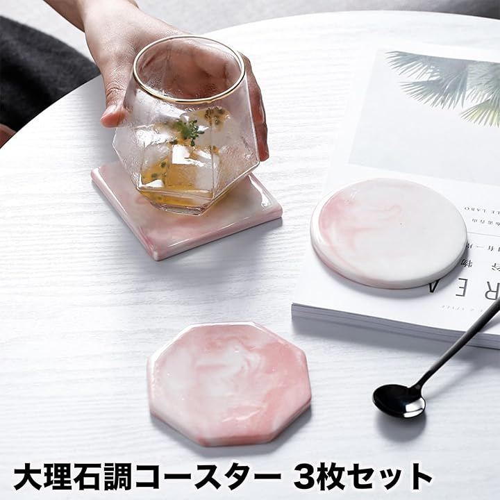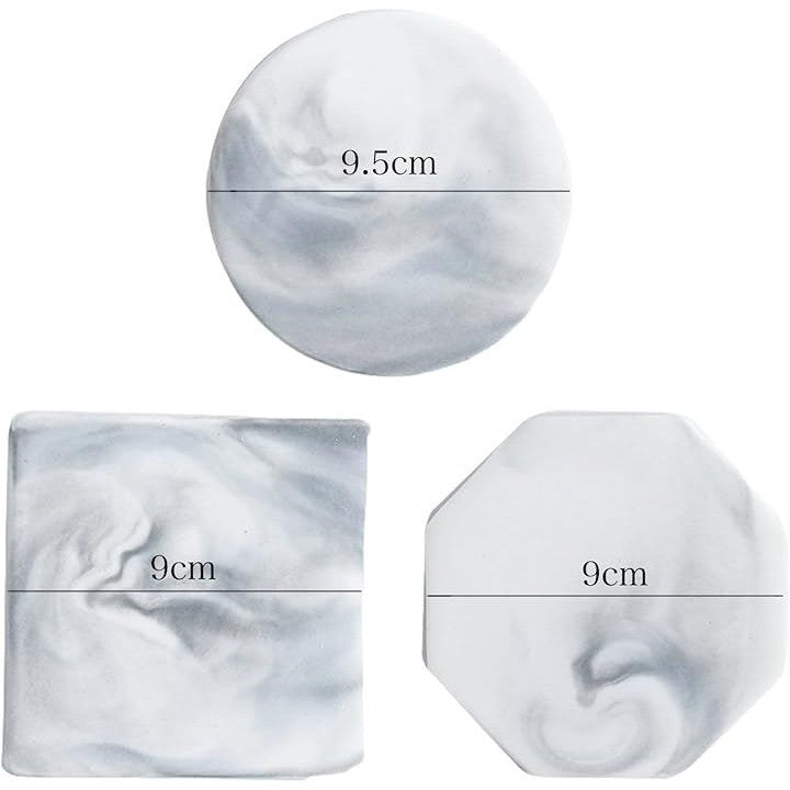 コースター 大理石調 3枚セット おしゃれ マーブル テーブル 北欧 インテリア くっつかない 白 カップ マット スタンド お茶 パット 断熱 速乾 丸型 四角 八角形 来客用