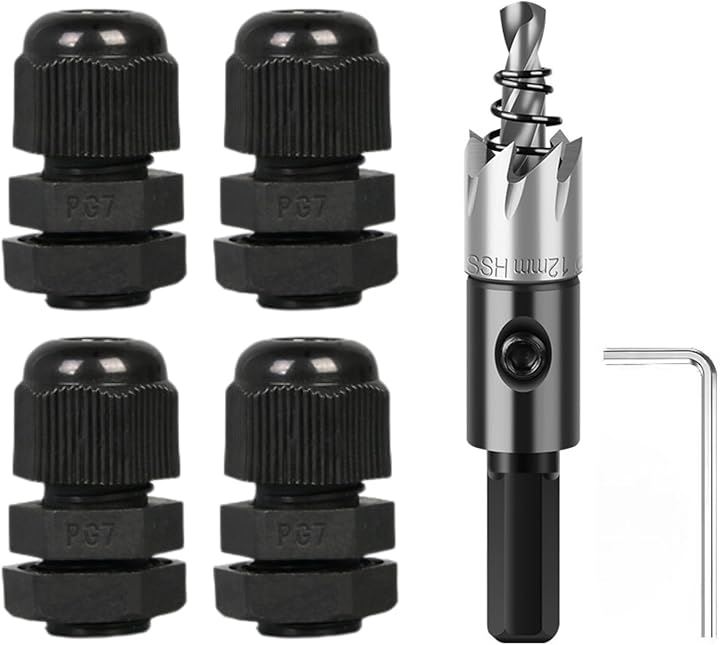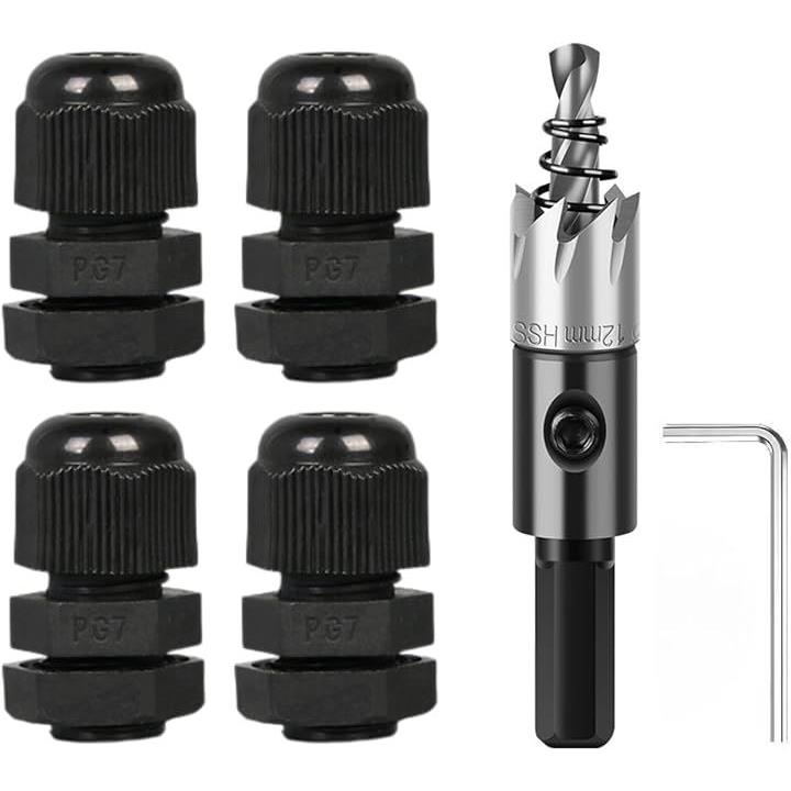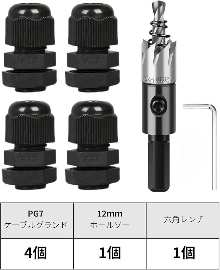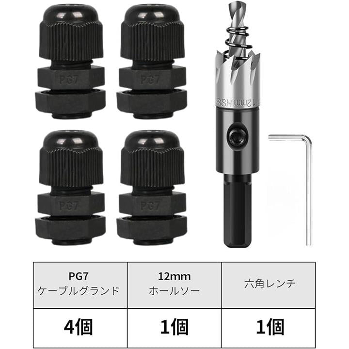 互換品 ケーブルグランド PG7 4個 ホールソー 12mm 1個 セット 防水 コネクタ ドリルビット ホールカッター