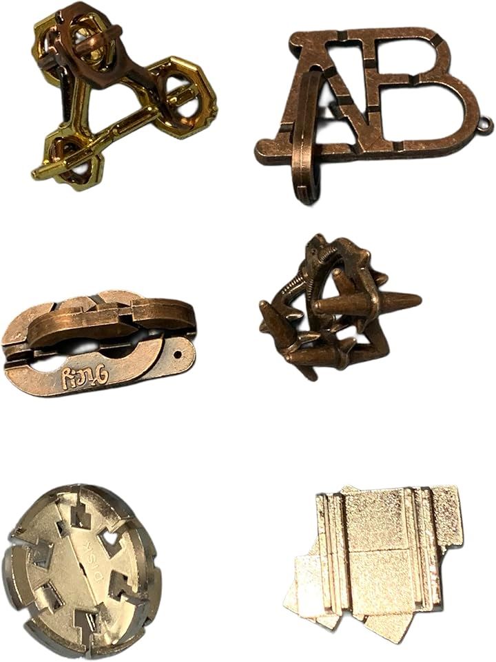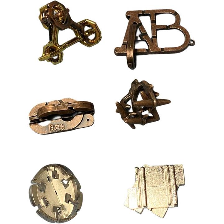 知恵の輪 知恵おもちゃ 6点セット 難易度6~3 リングパズル 知恵玩具 大人 子供 謎解き 暇つぶしグッズ 立体パズル 知育 古銅の秘密シリーズ