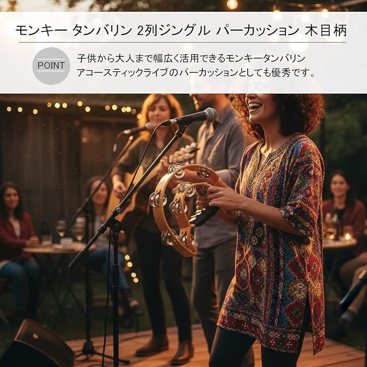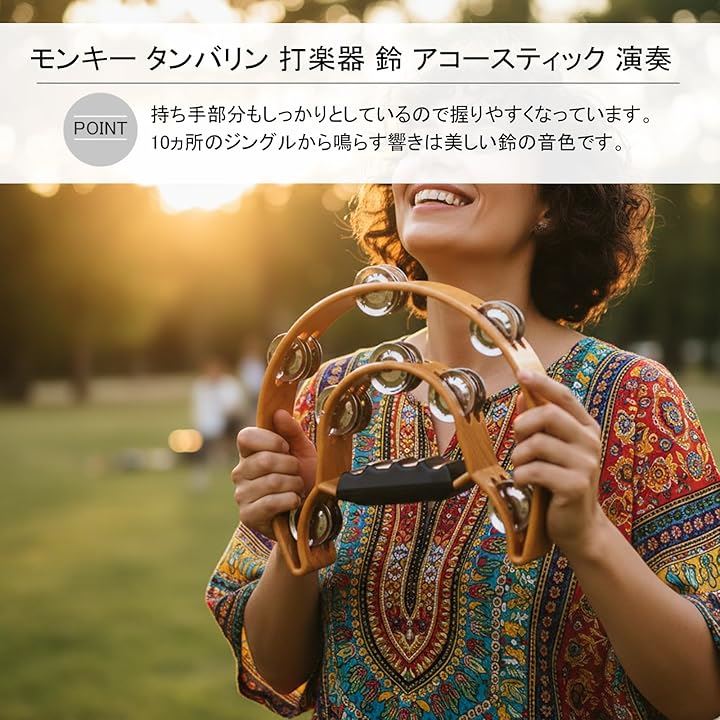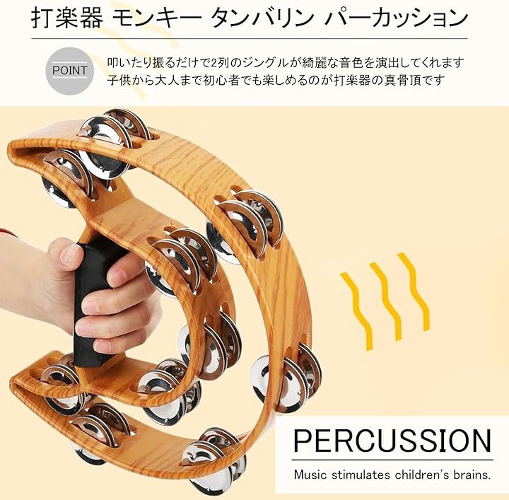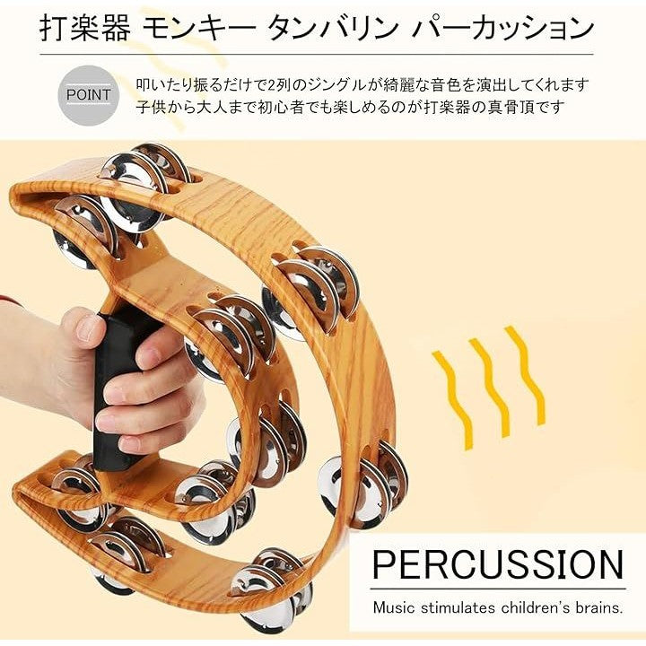 モンキー タンバリン 楽器 2列 ジングル 打楽器 パーカッション 鈴