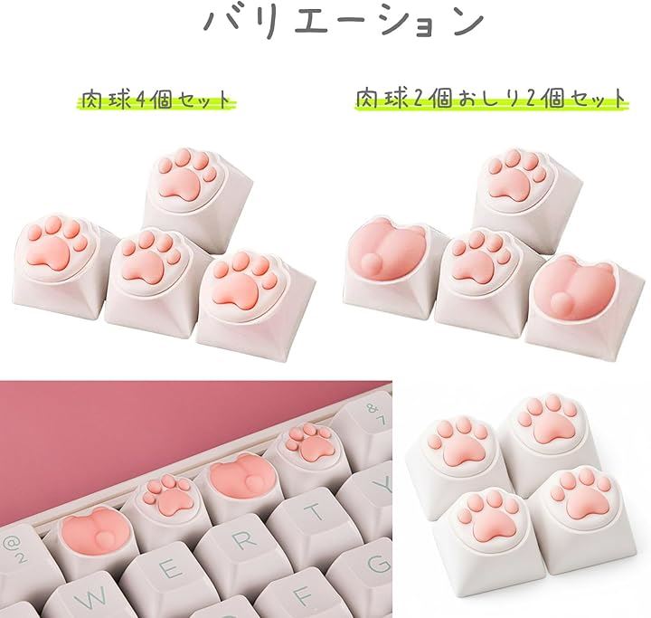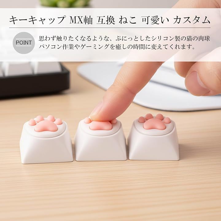 互換 キーキャップ MX軸 ねこ 可愛い カスタム キーボード 猫 肉球 メカニカル シリコン