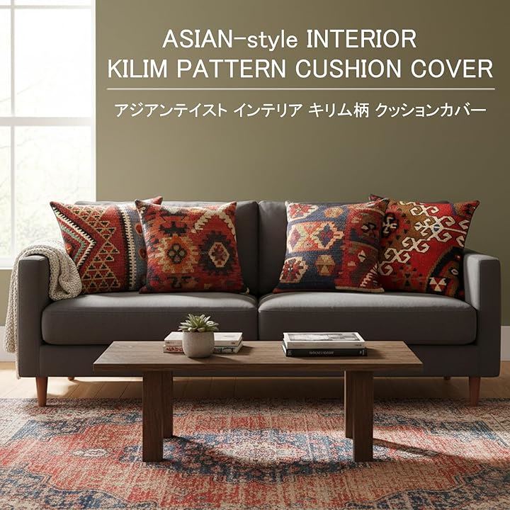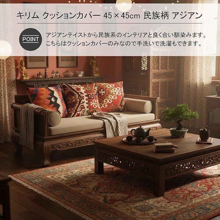 キリム クッションカバー 45x45cm 民族柄 アジアン 北欧 オルテガ アフリカ インド