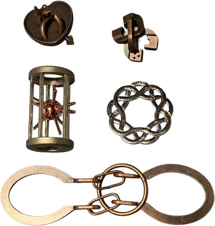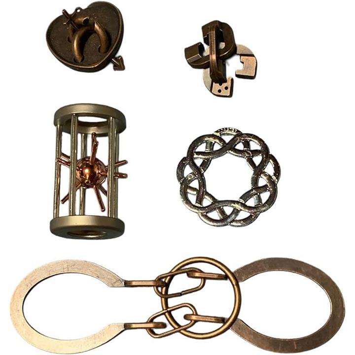 知恵の輪 知恵おもちゃ 5点セット 難易度6~3 リングパズル 知恵玩具 大人 子供 謎解き 暇つぶしグッズ 立体パズル 知育 古銅の秘密シリーズ