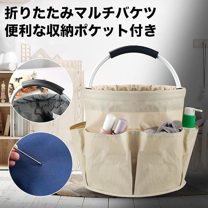 折りたたみ バケツ ポケット付き 15L マルチバケツ コンパクト 多用途 キャンプ アウトドア ピクニック レジャー 釣り 洗車 掃除 工具入れ 収納 軽量 持ち運び