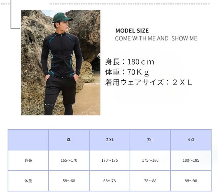 サイズ展開豊富で体型に合わせやすい:このメンズラッシュガードセットは、幅広いサイズ展開が特徴。