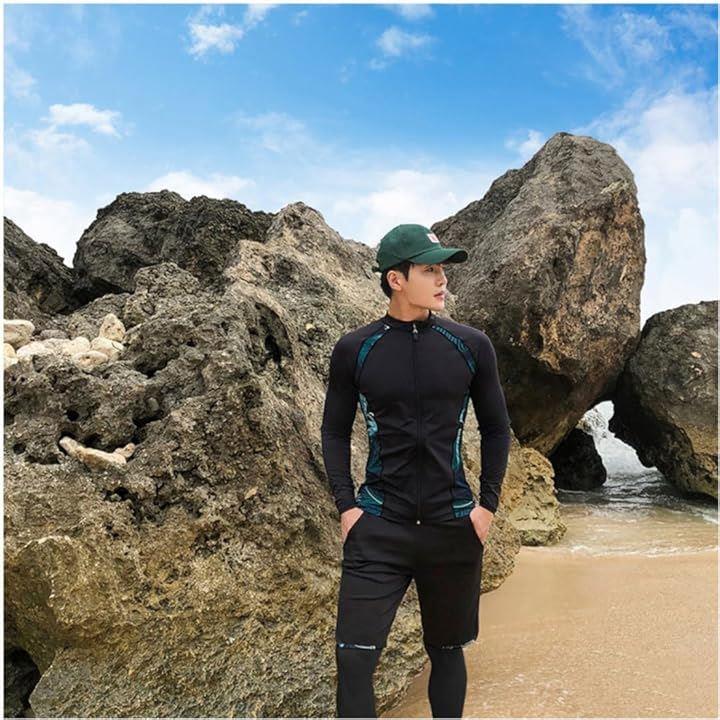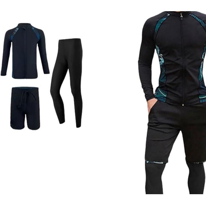 動きやすさと機能性を備えた水陸両用デザイン:メンズ用ラッシュガード3点セットは、長袖トップス・ショートパンツ・レギンスタイプの水着が一式揃った構成で、海や川でのレジャーからプール、ジムでの運動まで多目的に活用できます。